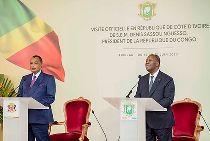 Cette adresse faite au président congolais ce lundi 12 juin 2023 au palais présidentiel à Abidjan-Plateau, s'inscrit dans le cadre d'une visite officielle effectuée par Denis Sassou Nguesso en Côte d'Ivoire.