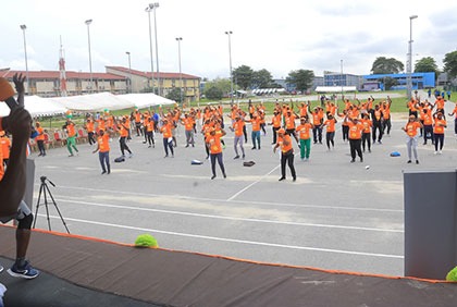Accompagnés de fanfare et de pompom girls, les agents de la DCF ont débuté cette journée sportive par une marche avant de fournir des efforts physiques en terme d'étirement sous une musique.