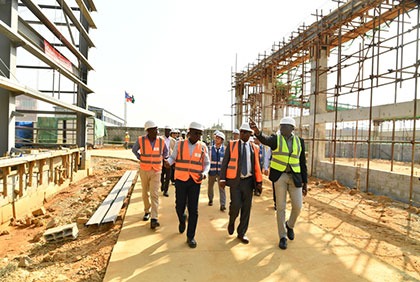 La visite de ce jour a donc permis de noter que les travaux des usines de transformation et de stockage, le centre de formation et les bureaux sont bien avancés, avec les structures principales posées, malgré les désagréments dus aux intempéries et l’état du sol au commencement du chantier qui n’était pas praticable.
