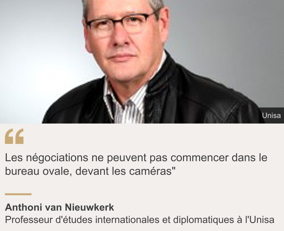 Le professeur Van Nieuwkerk prévoit deux scénarios possibles : le premier prévoit une interaction "agréable et cordiale" et la réinitialisation que l'Afrique du Sud souhaite "si les esprits rationnels prévalent et si beaucoup de travail a été fait" de part et d'autre.