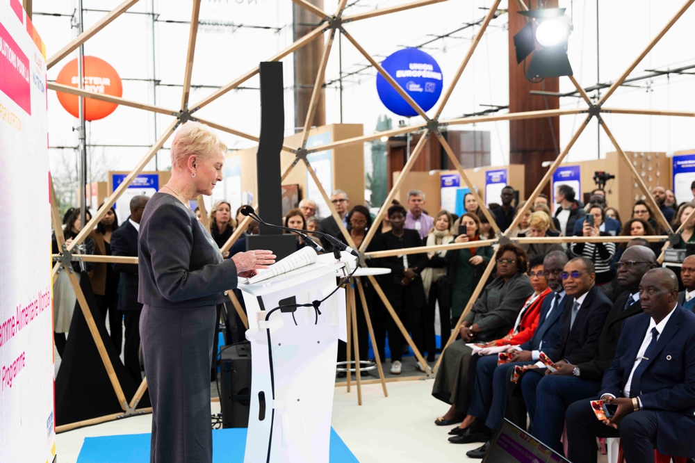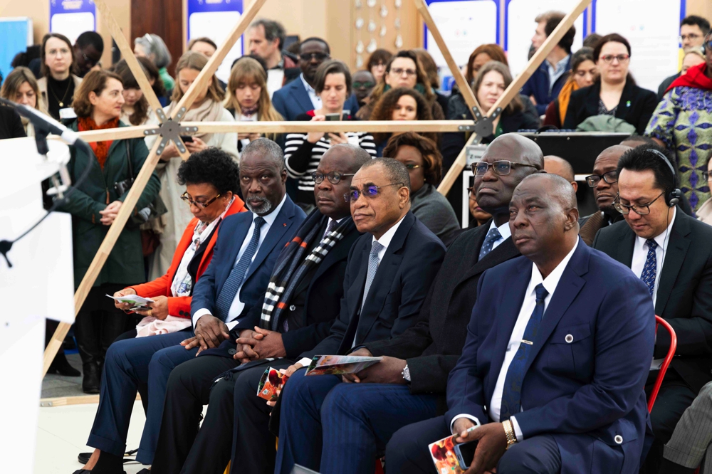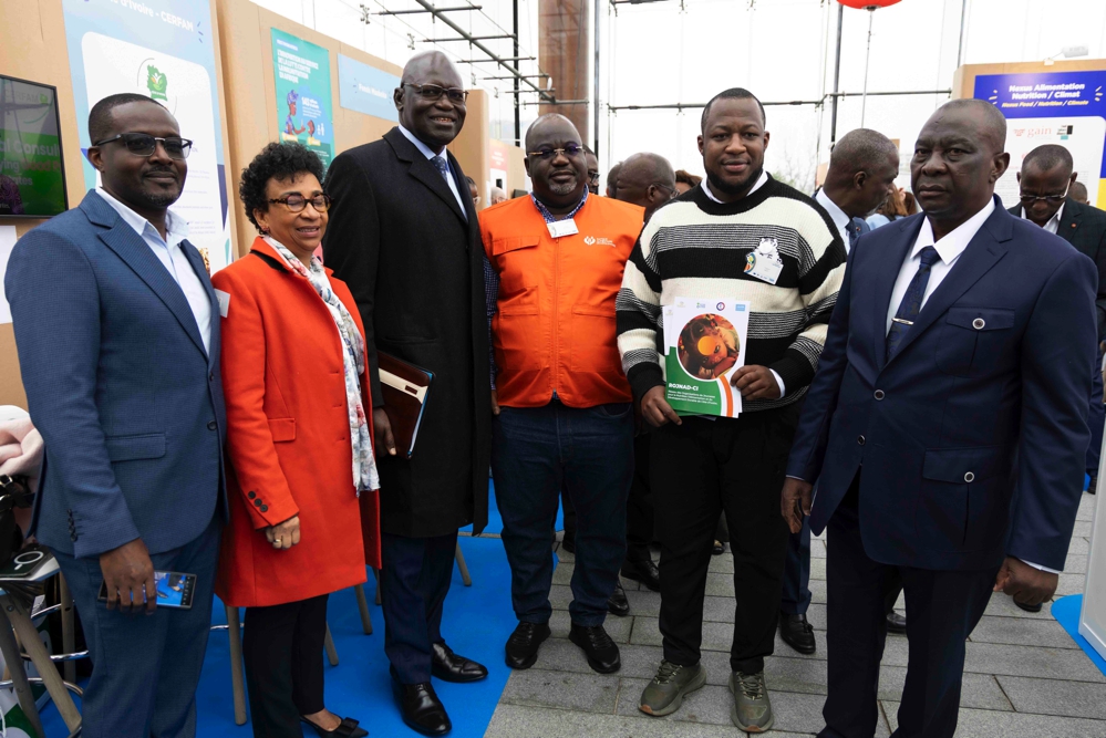 A l'ouverture officielle du ''Village des Solutions pour la Nutrition'', les Ministres membres de la délégation du Vice-Président de la République ont effectué une visite guidée du stand d'exposition du CERFAM (Centre d'Excellence Régional de lutte contre la Faim et la Malnutrition) à Paris, le 26 mars 2025, en marge des travaux de la 4e édition du Sommet ''Nutrition for Growth'', qui s'est tenu les 27 et 28 mars 2025, au Centre de Conférences Ministériel.