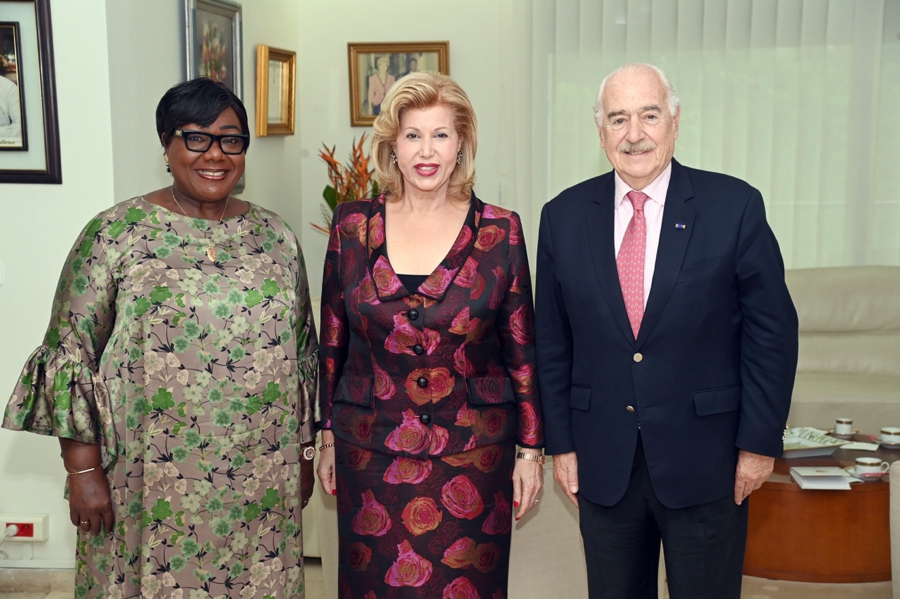Jeudi 29 Mai 2025. Cabinet de la Première Dame . La Première Dame, Madame Dominique Ouattara a reçu en audience Monsieur Andrés Pastrana Arango, homme d'Etat et ancien Président de la République de Colombie