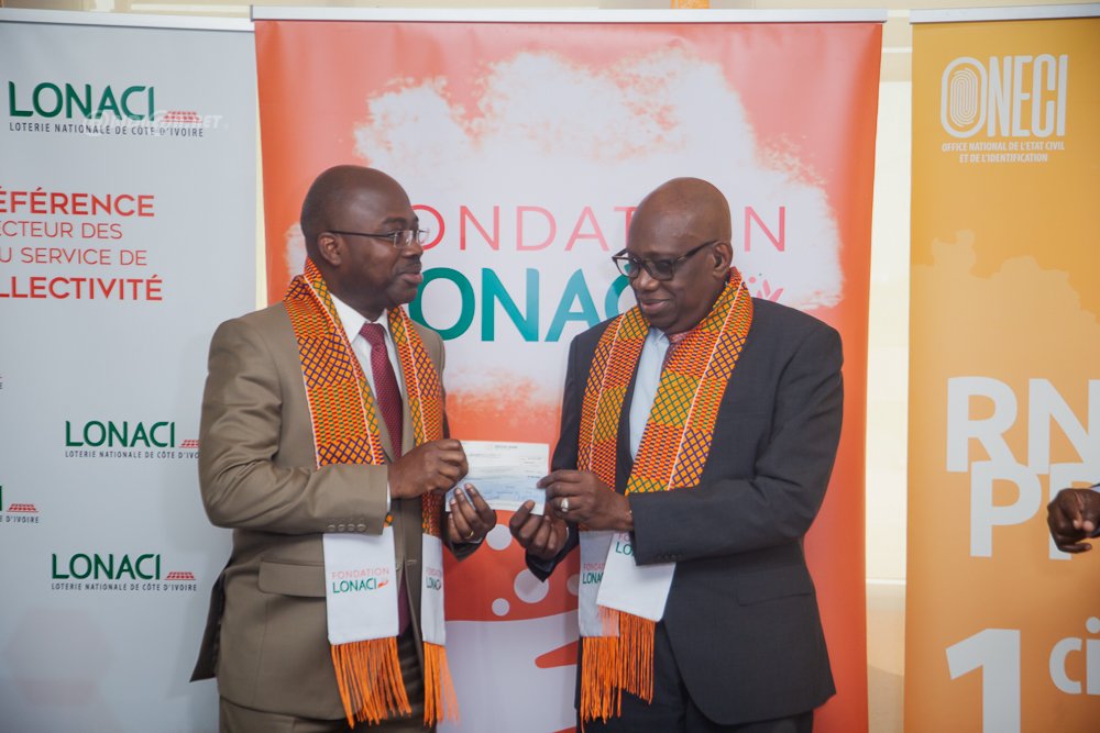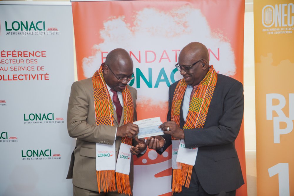 Abidjan - Mercredi 20 Août 2025 . La Loterie Nationale de Côte d’Ivoire (LONACI) et sa Fondation ont remis ce mercredi 20 août 2025, au siège de l’institution à Marcory Zone 4, un chèque d’une valeur globale de 10 millions FCFA à l’Office National de l’État Civil et de l’Identification (ONECI). Cette contribution vise à faciliter l’établissement des cartes nationales d’identité pour les personnes en situation de handicap.