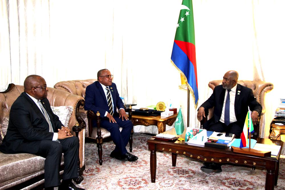 Le président de la République des Comores, Azali Assoumani, a accordé ce jeudi 28 août 2025 au palais de Beit-Salam à Moroni, une audience à René Bourgoin, président de la Haute Autorité de la Communication Audiovisuelle de Côte d’Ivoire (HACA) et président du Réseau des Instances Africaines de Régulation de la Communication (RIARC).