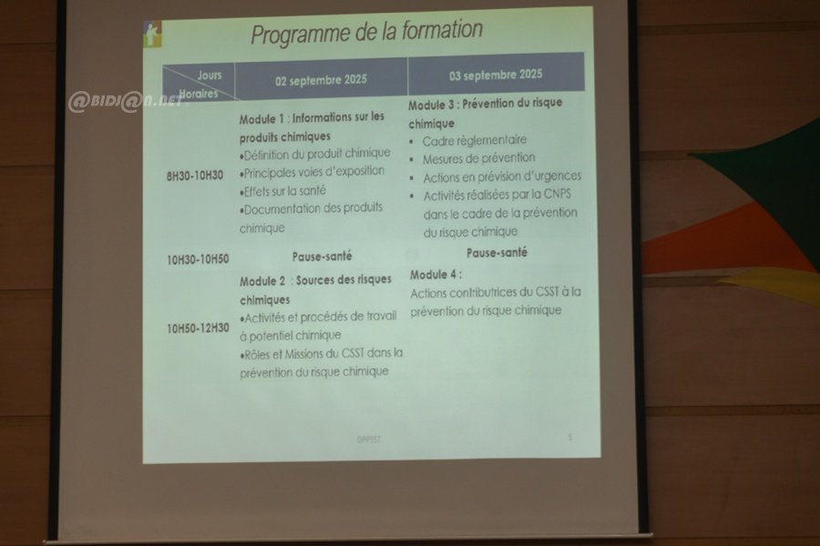 L’Auditorium de la Caisse nationale de prévoyance sociale (CNPS) au Plateau a servi ce mardi 2 septembre 2025 de cadre au lancement d’une formation de deux jours organisée par la Direction de la Prévention et de la Promotion de la Santé et Sécurité au Travail (DPPSST).