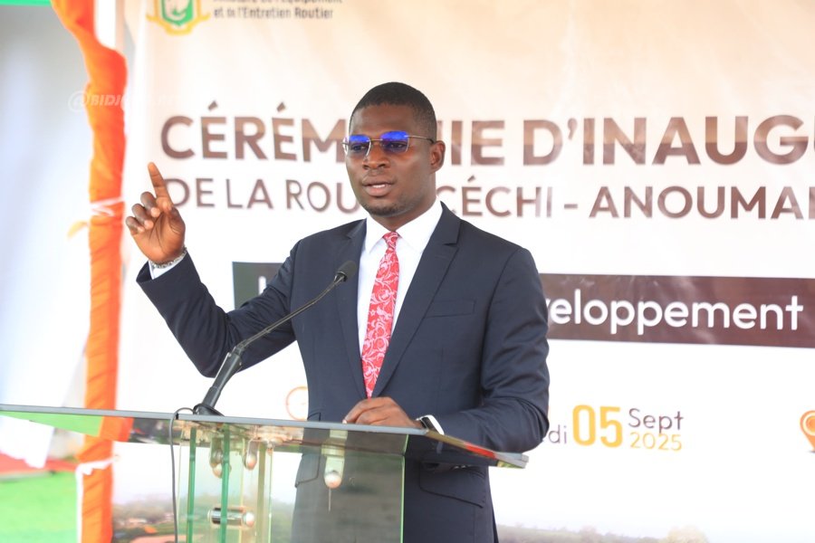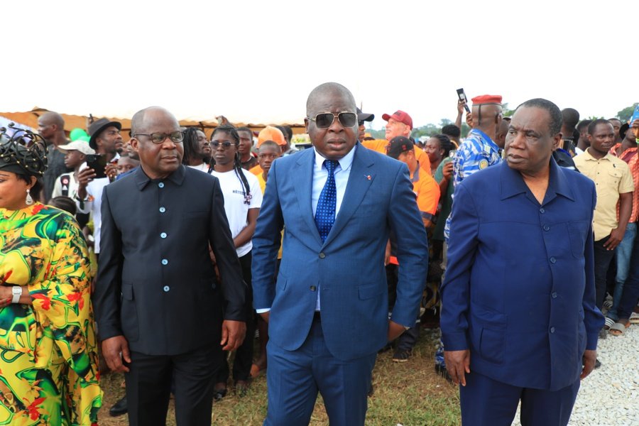 Anoumaba le 05 septembre 2025 : La Premier Ministre, Robert Beugré Mambé, accompagné de quelques membres du gouvernement a pris part ce vendredi à l'inauguration de la route Céchi-Anoumaba-M'Batto suivi du lancement de la voie Anoumaba-Tiémélékro-Dimbokro dans la région du Moronou dans le cadre du Plan National de Développement (PND) de l'État de Côte d'Ivoire.
