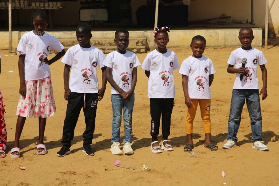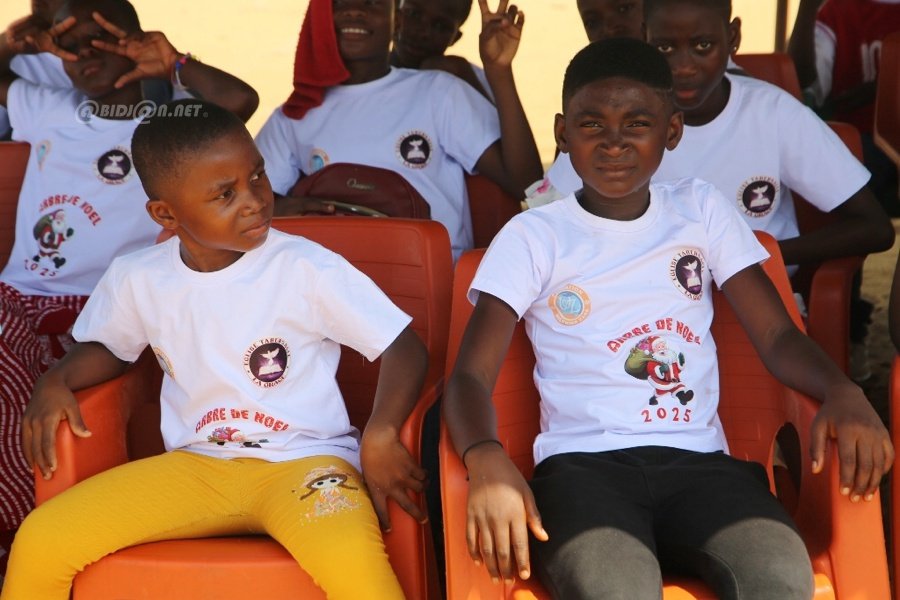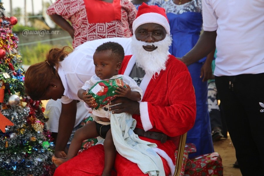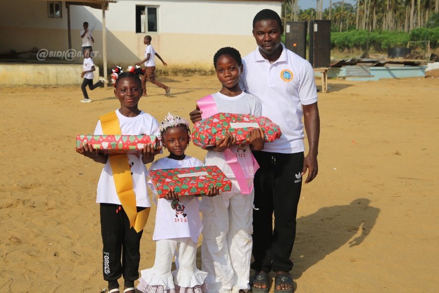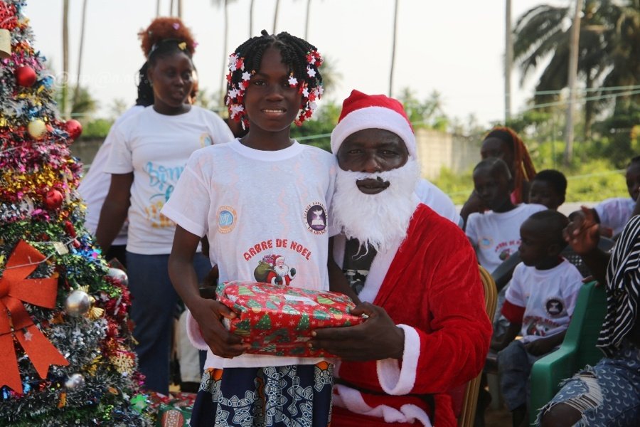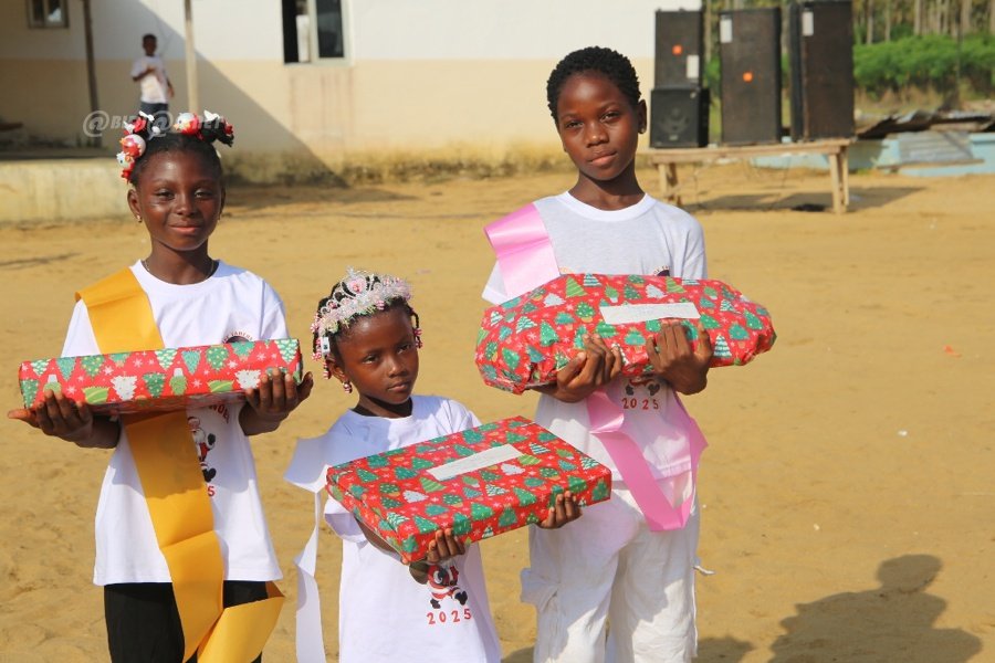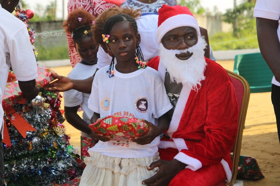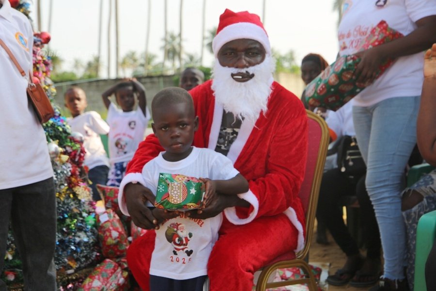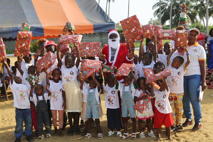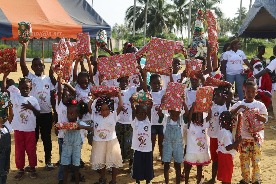 Jacqueville le 26 Décembre 2025. La fondation Wilfried Zaha a offert un arbre de Noël féerique aux enfants de la ville de Jacqueville pour les fêtes de fin d'année ce vendredi au terrain de la fondation
