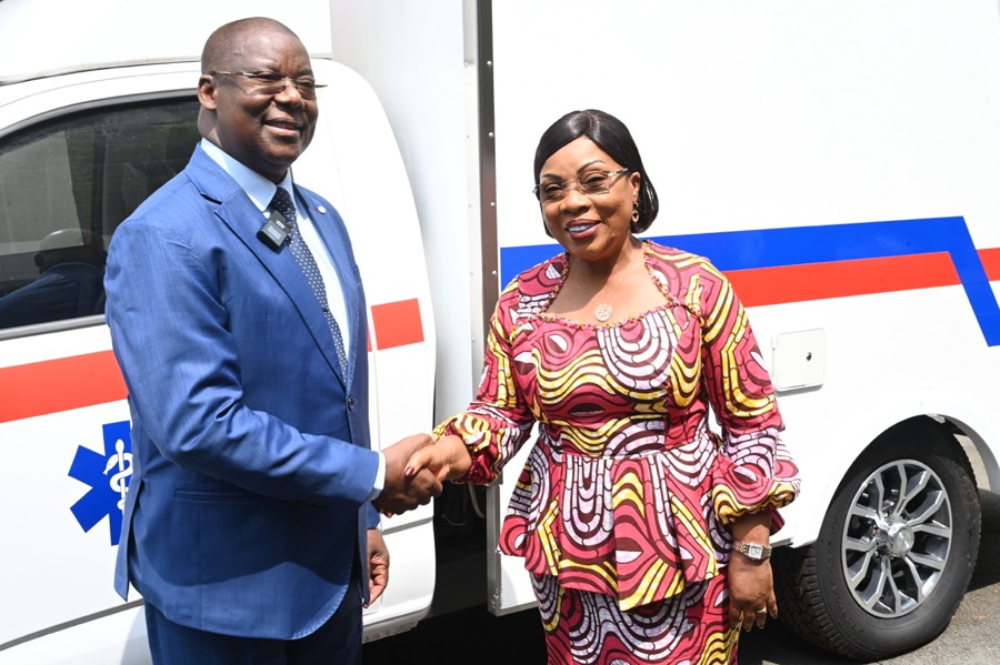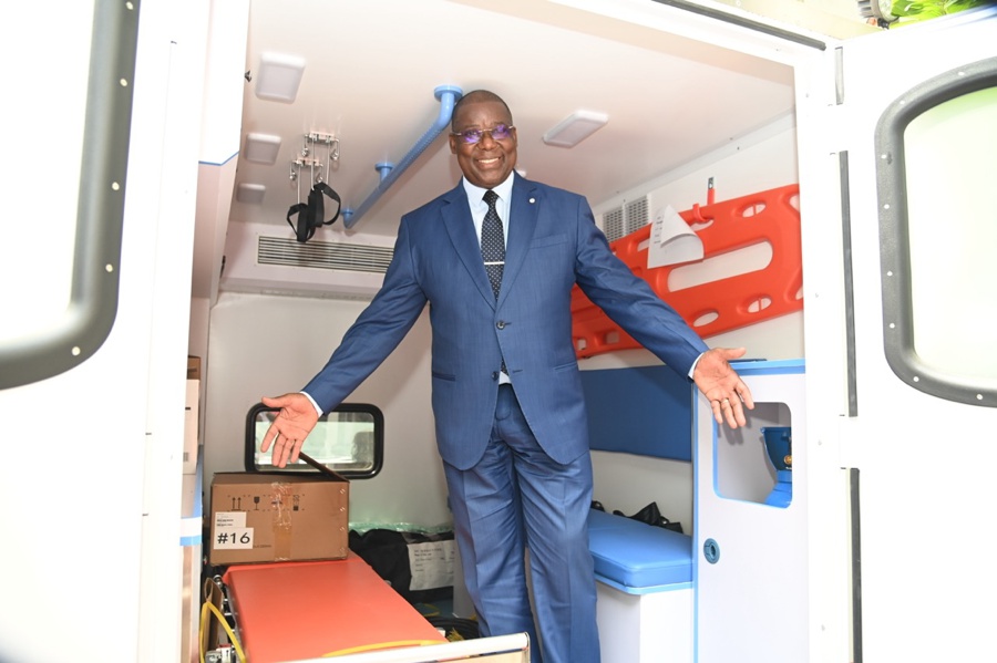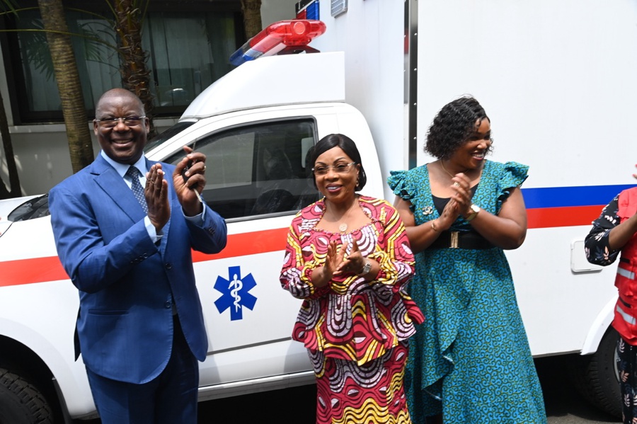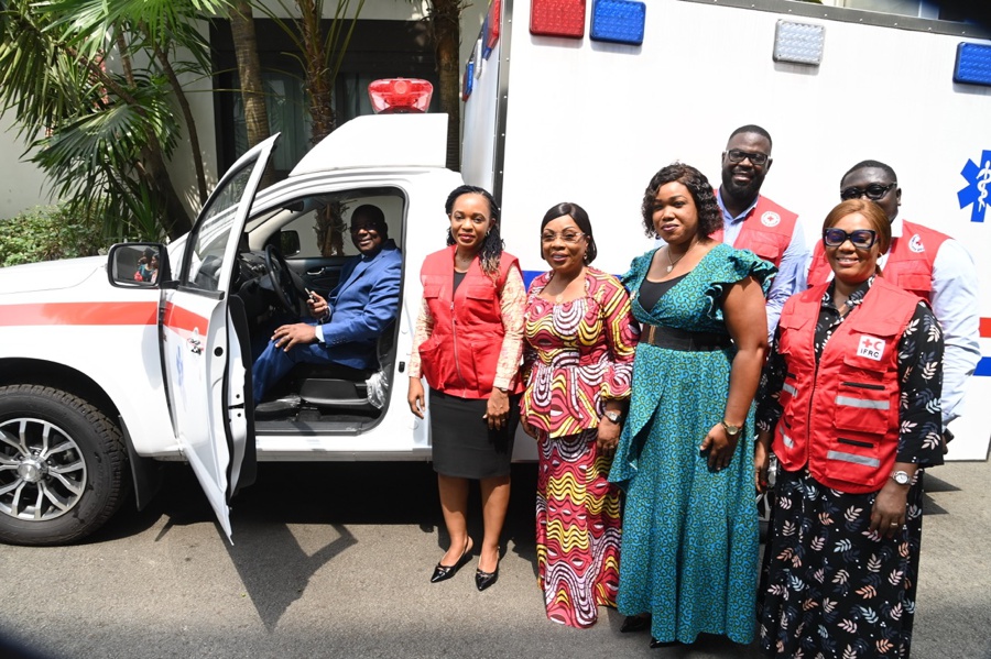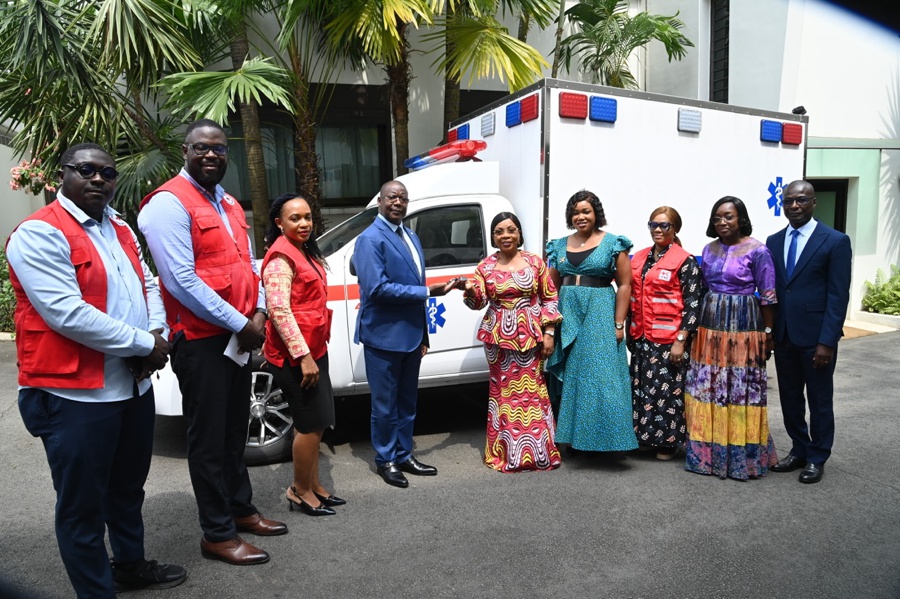 Jeudi 15 janvier 2025. Cabinet de la Première Dame. Humanitaire: La Première Dame, Madame Dominique Ouattara a offert une ambulance médicalisée à la Croix Rouge de Côte d'Ivoire