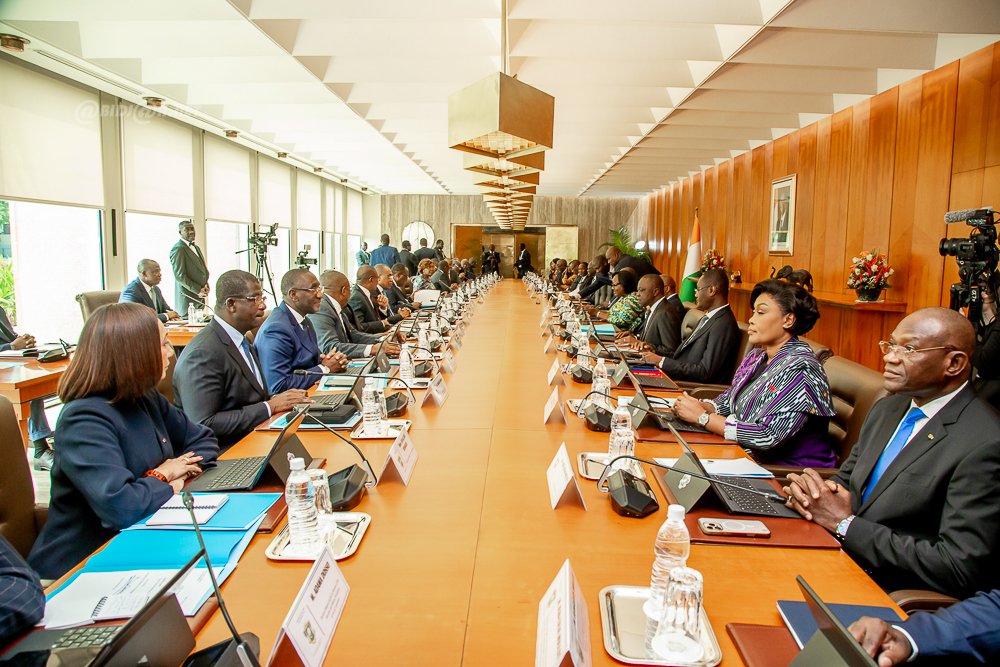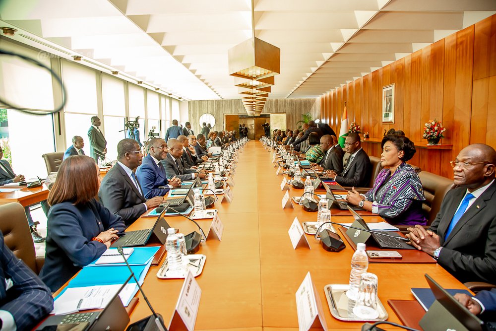 Le président ivoirien Alassane Ouattara a présidé le samedi 24 janvier 2026 au palais présidentiel d'Abidjan, le premier Conseil des ministres du nouveau gouvernement formé la veille et fort de 34 membres dont 04 ministres délégués.