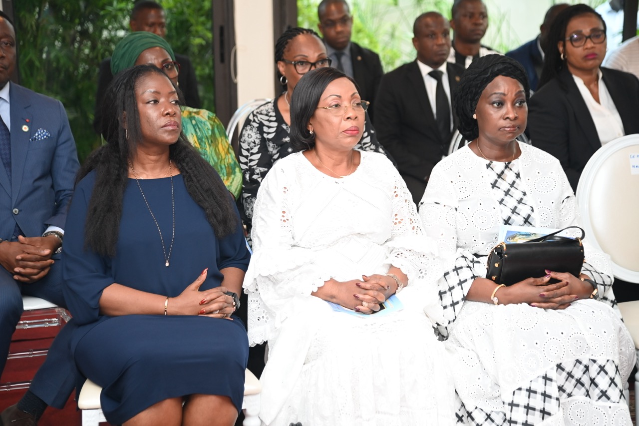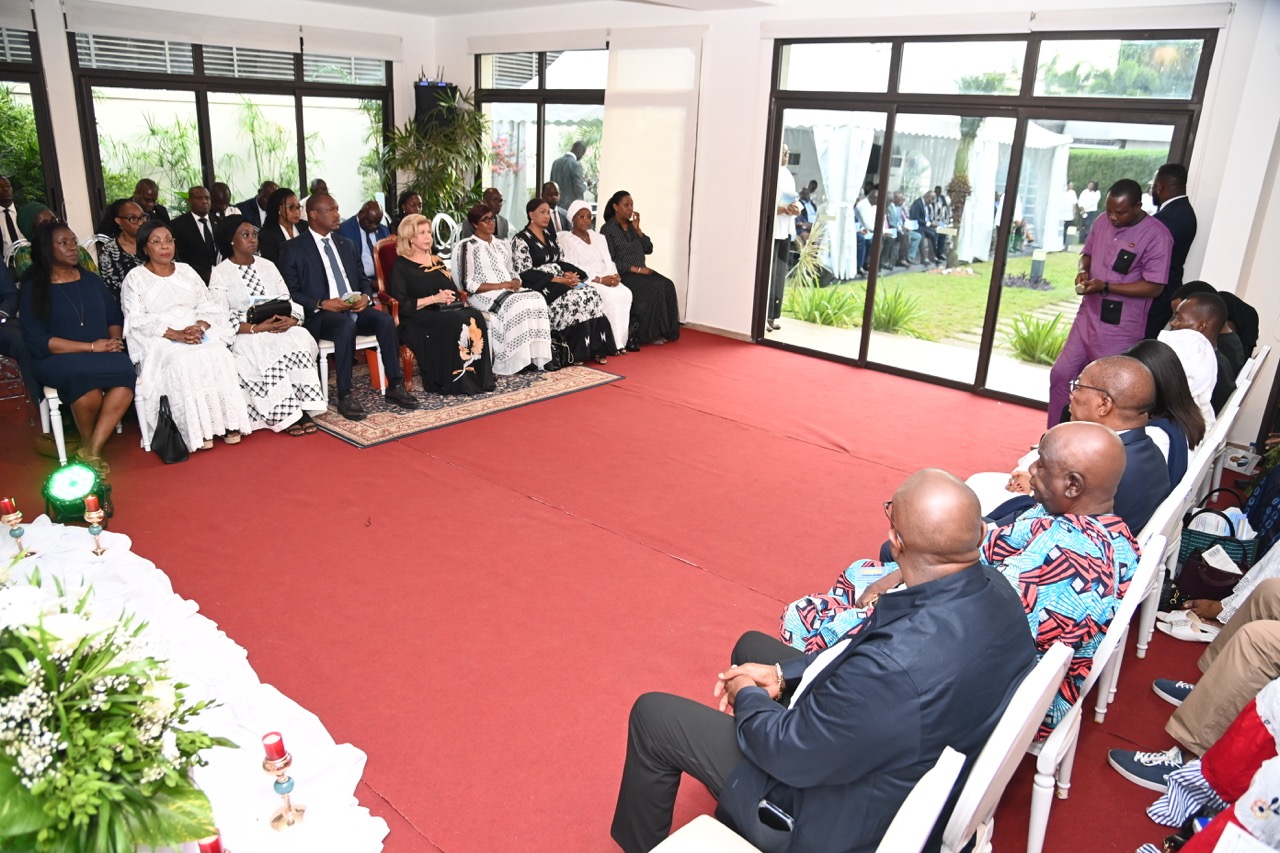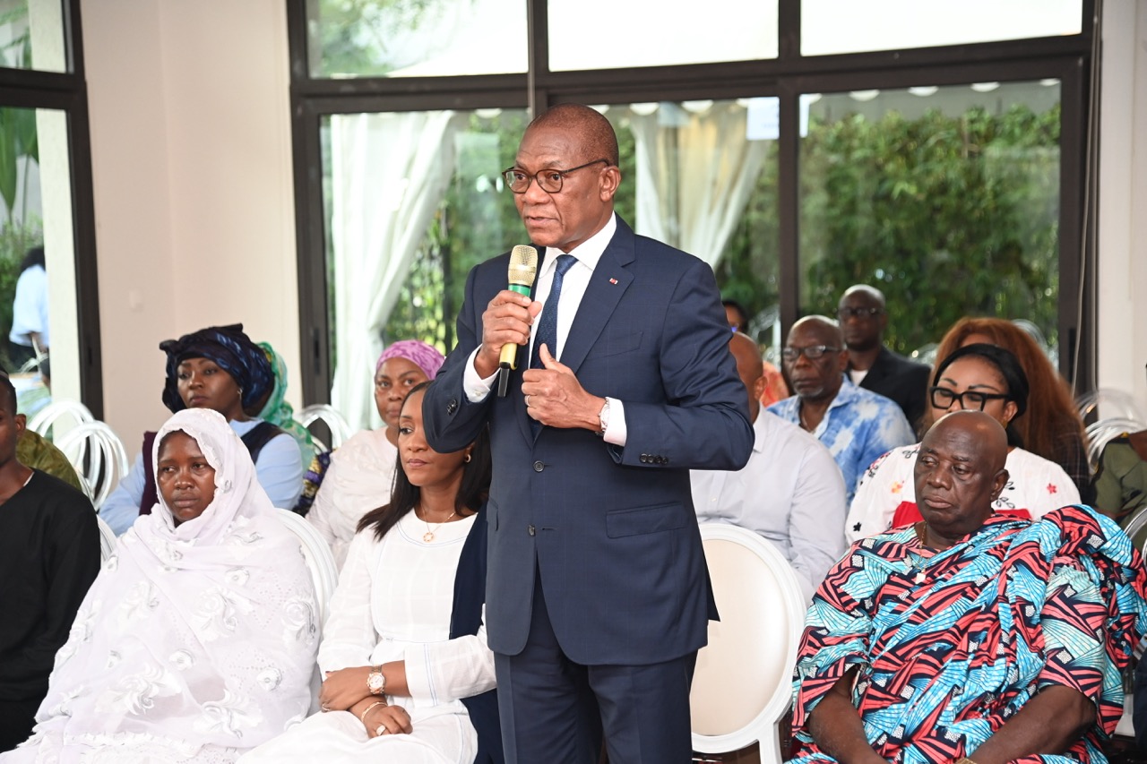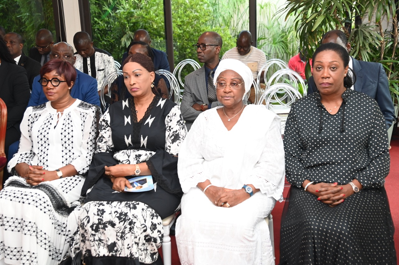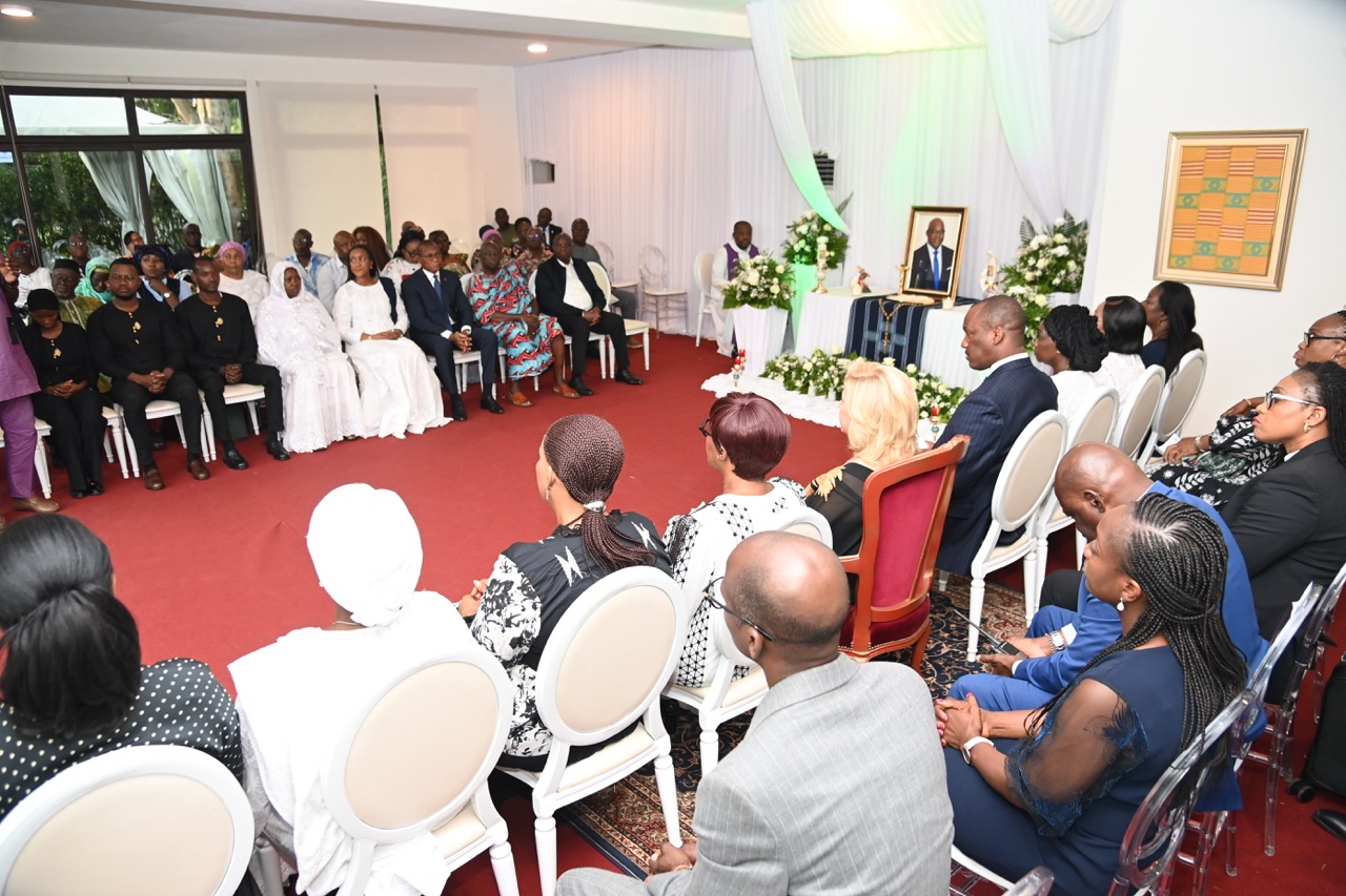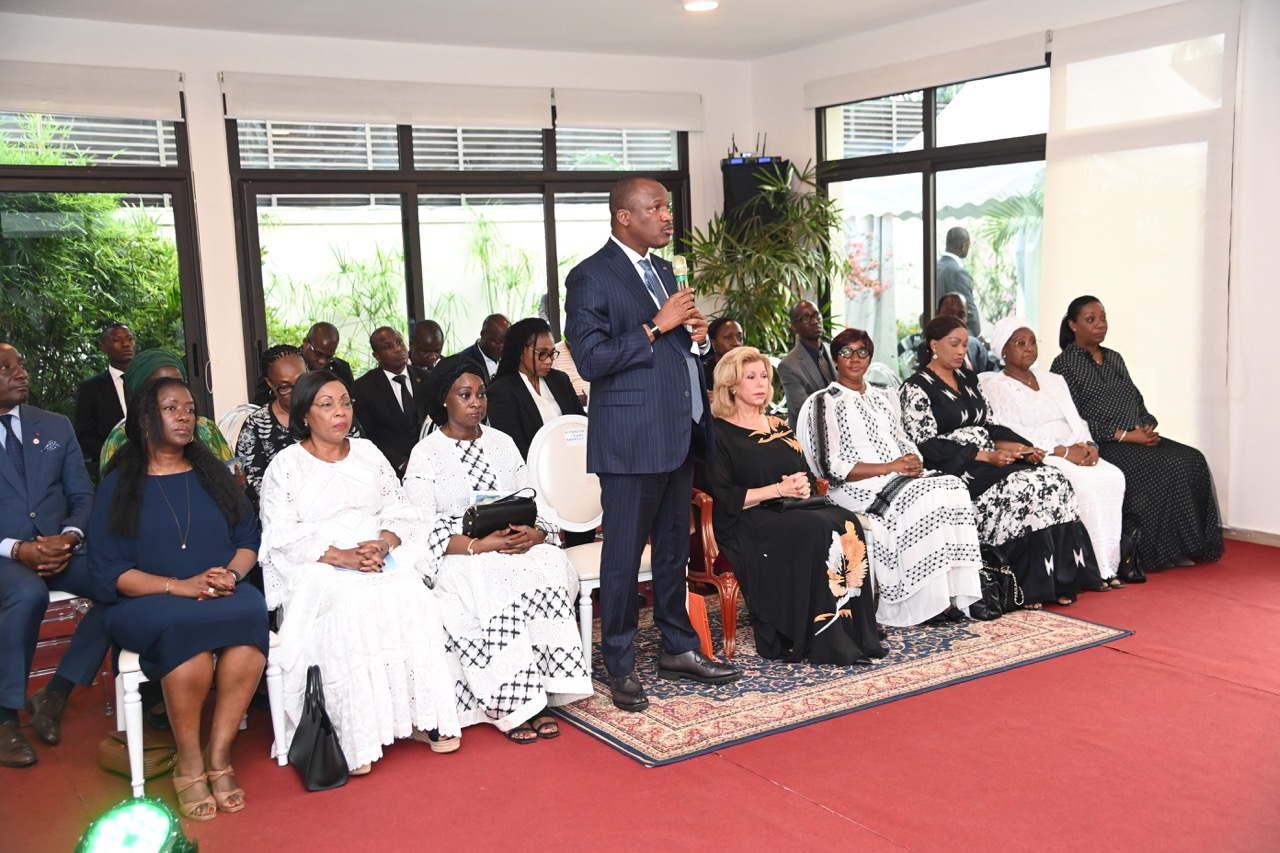 Lundi 9 février 2026. Riviera Golf (Abidjan). La Première Dame, Madame Dominique Ouattara présente ses condoléances et celles du Président au Ministre Bruno Nabagné Koné suite au décès de son frère cadet