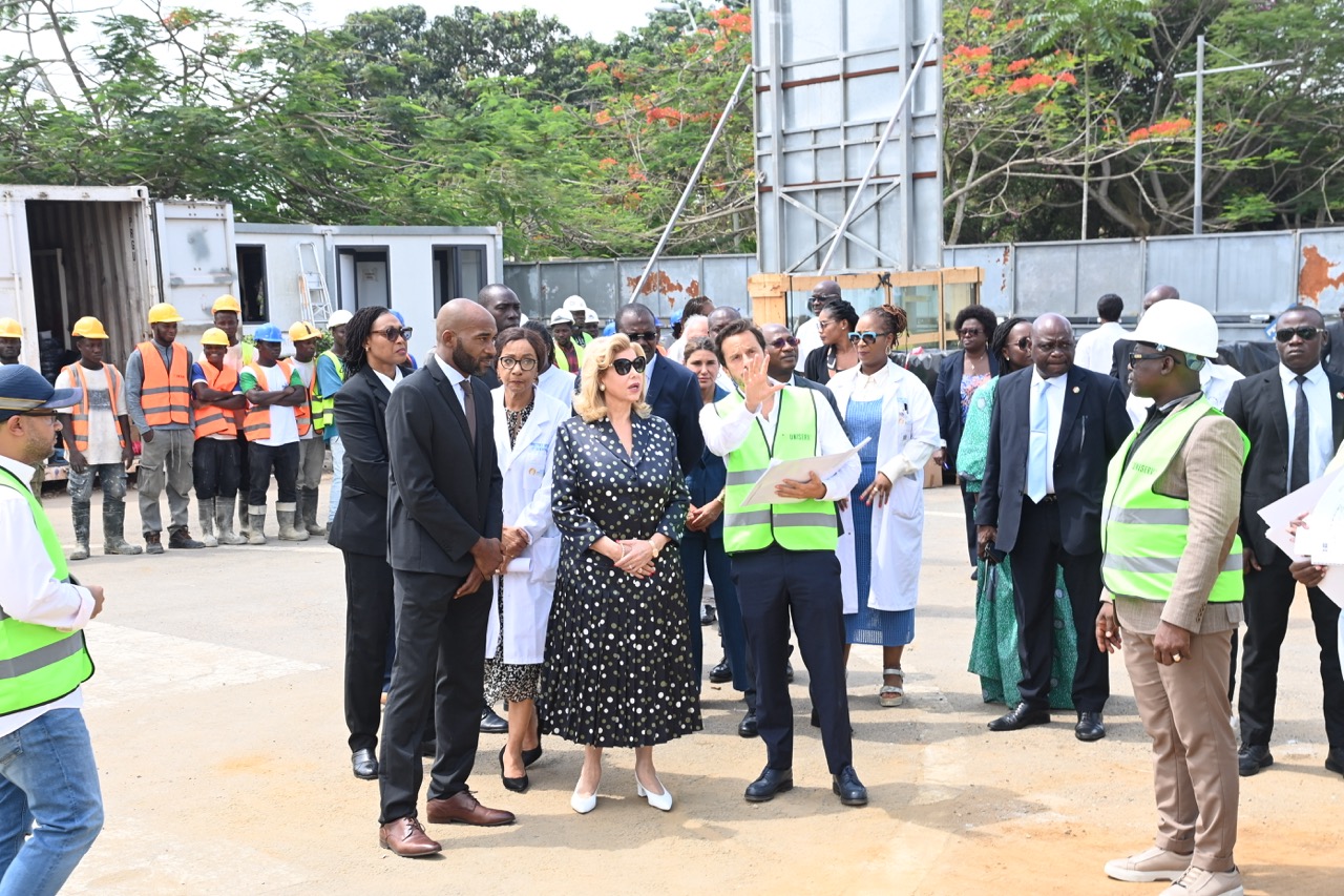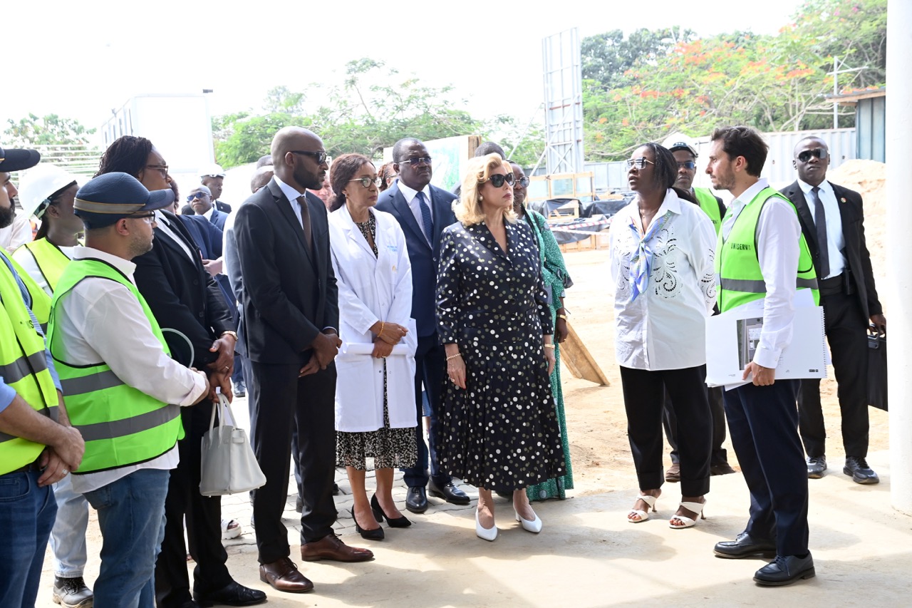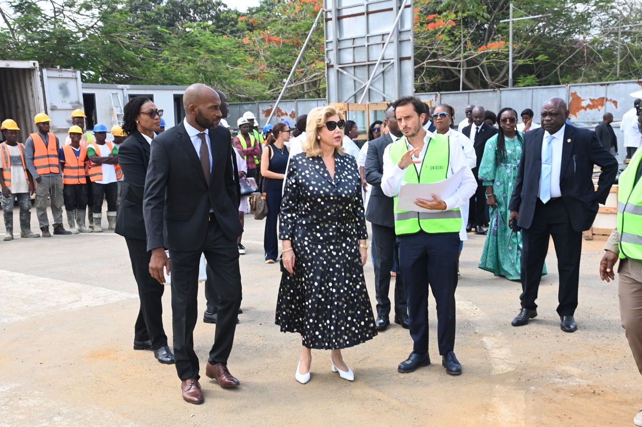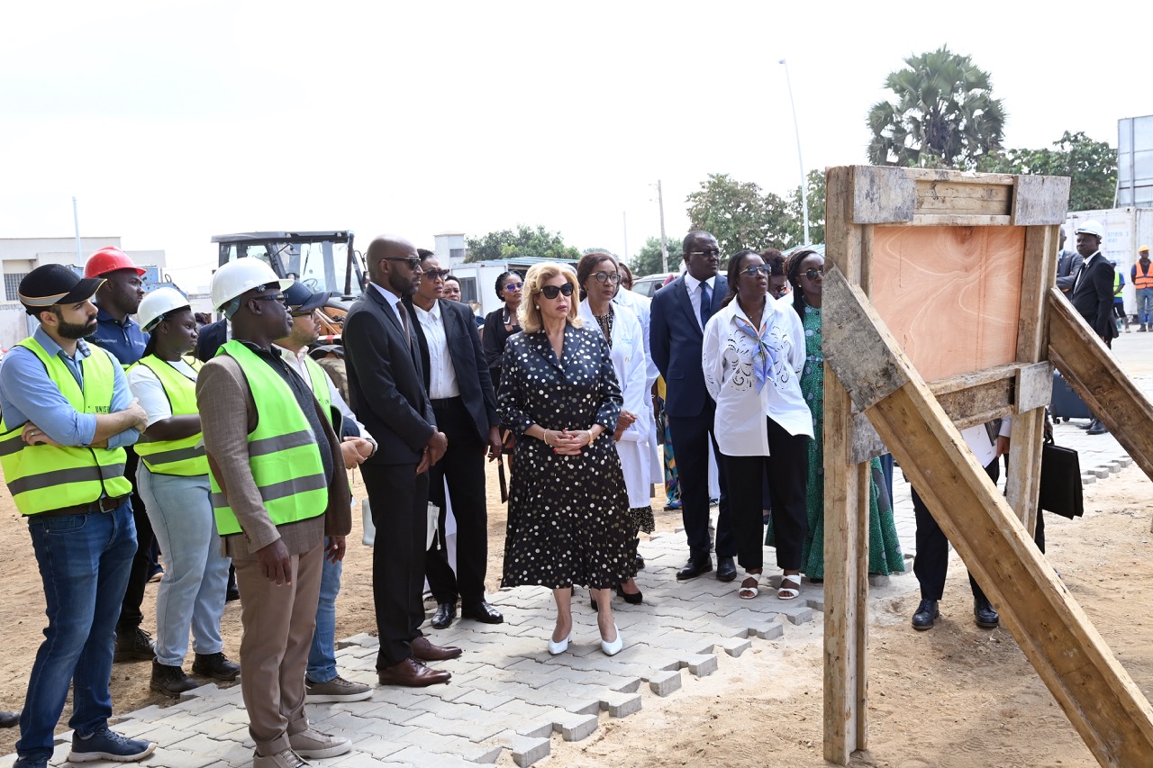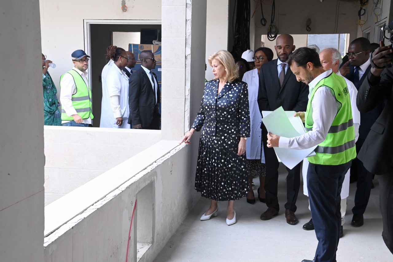 Jeudi 12 février 2026. La Première Dame, Madame Dominique Ouattara visite le chantier de l'aile de chirurgie cardiaque pédiatrique de l'Hôpital Mère-Enfant de Bingerville