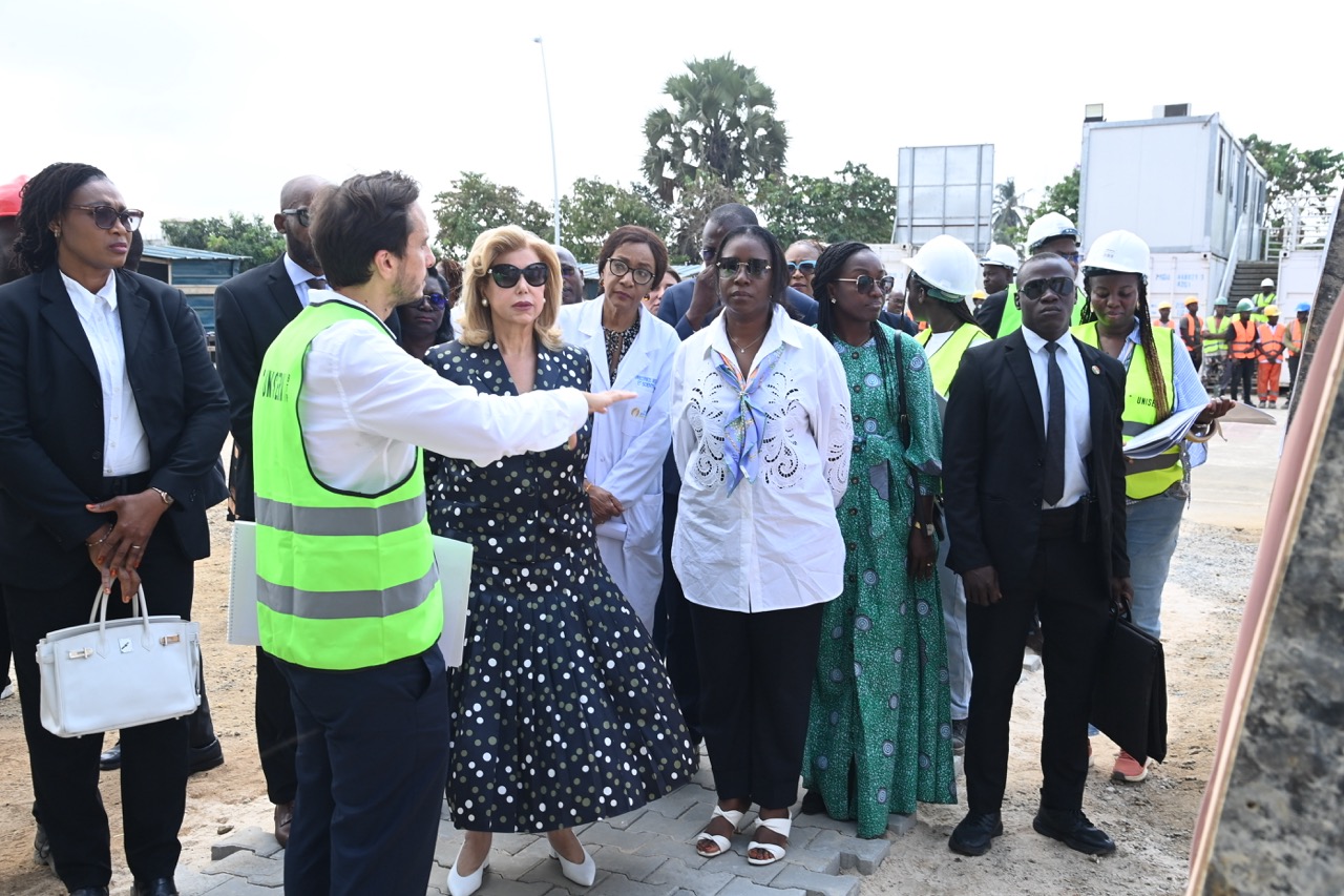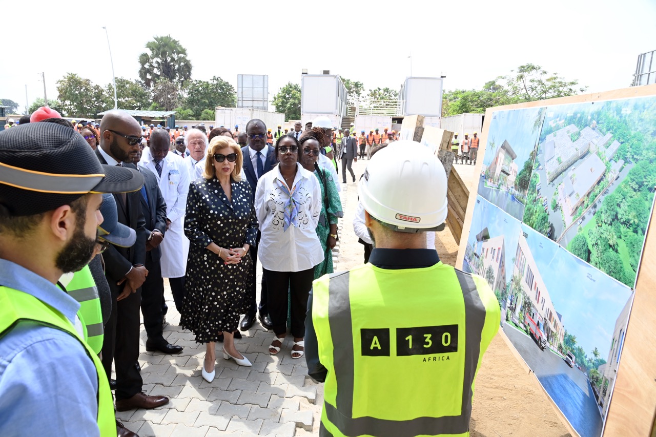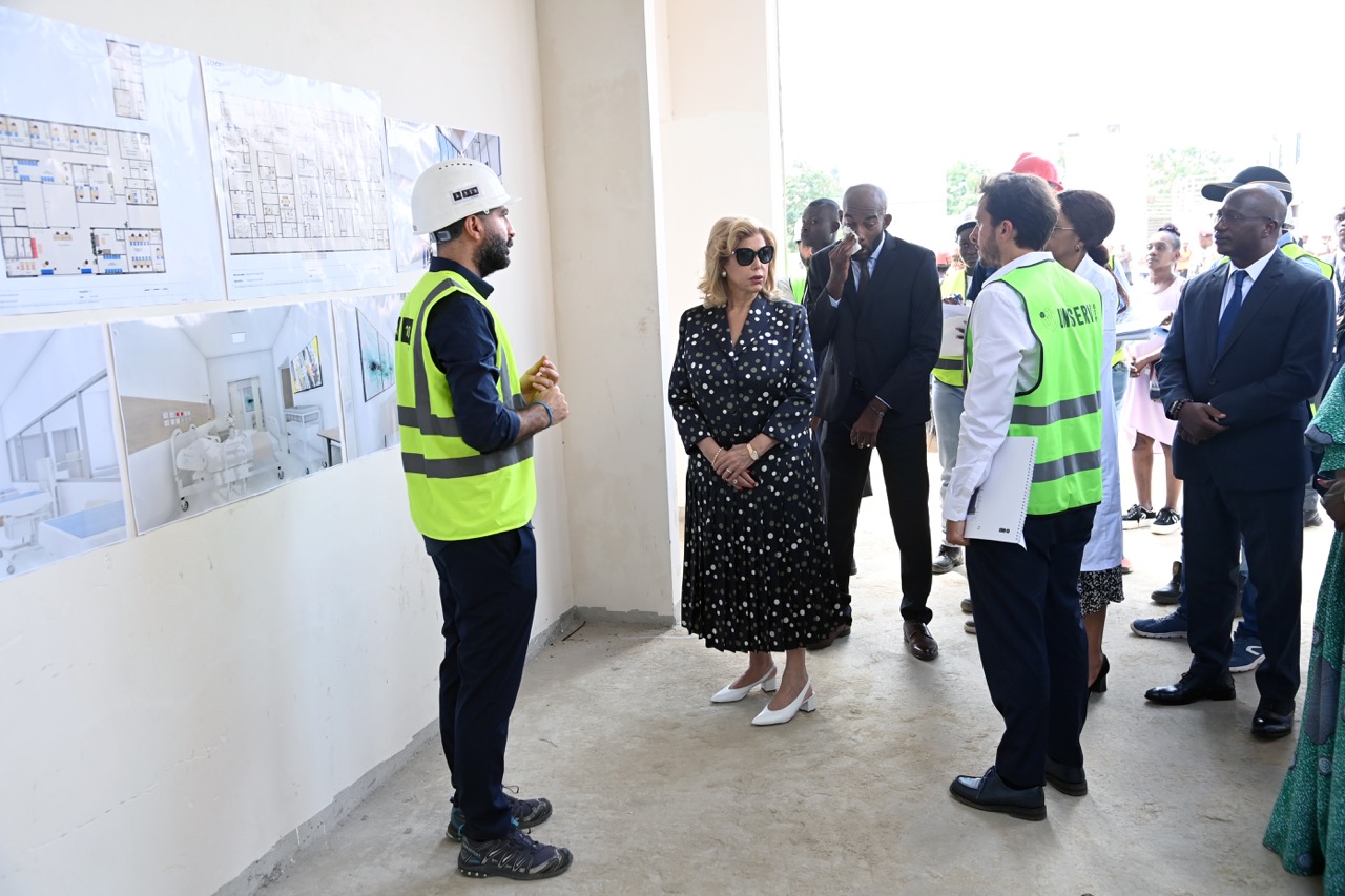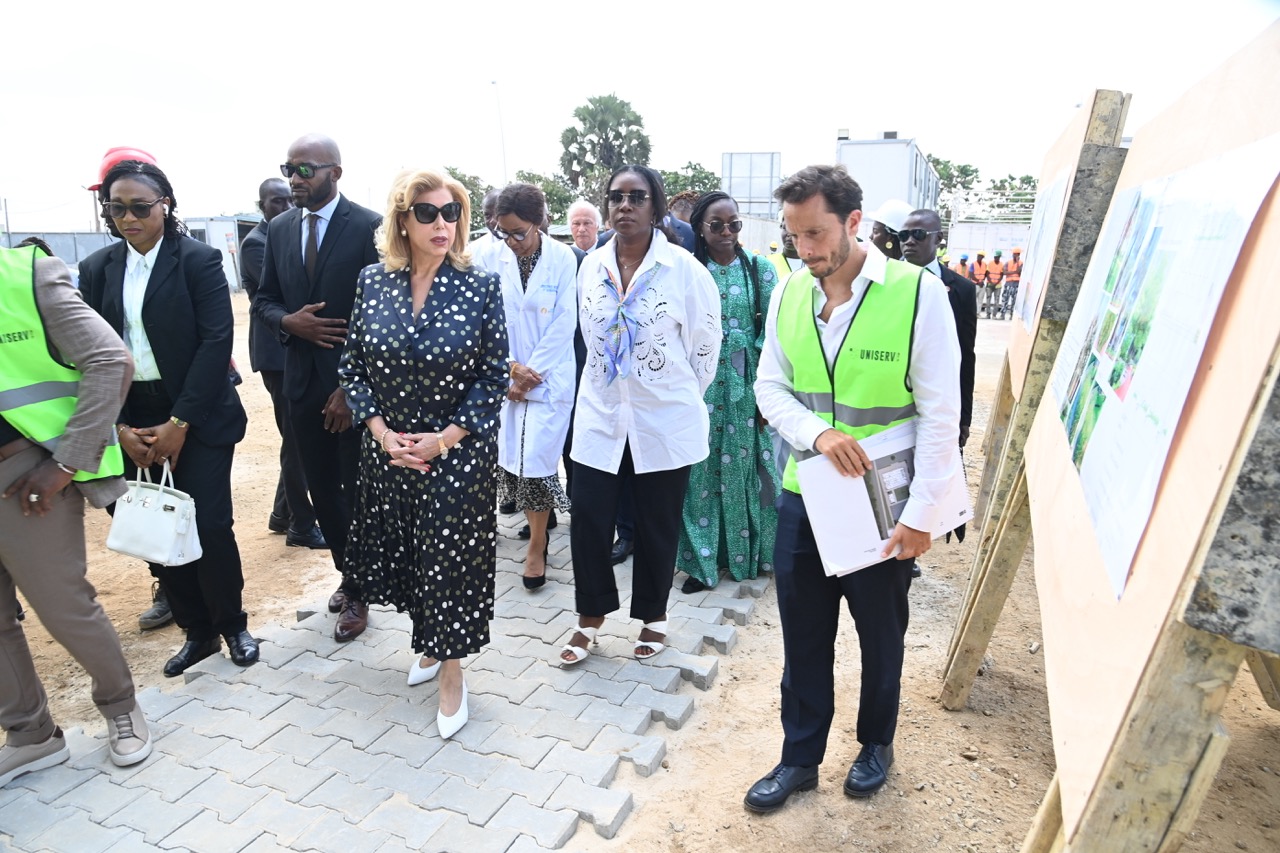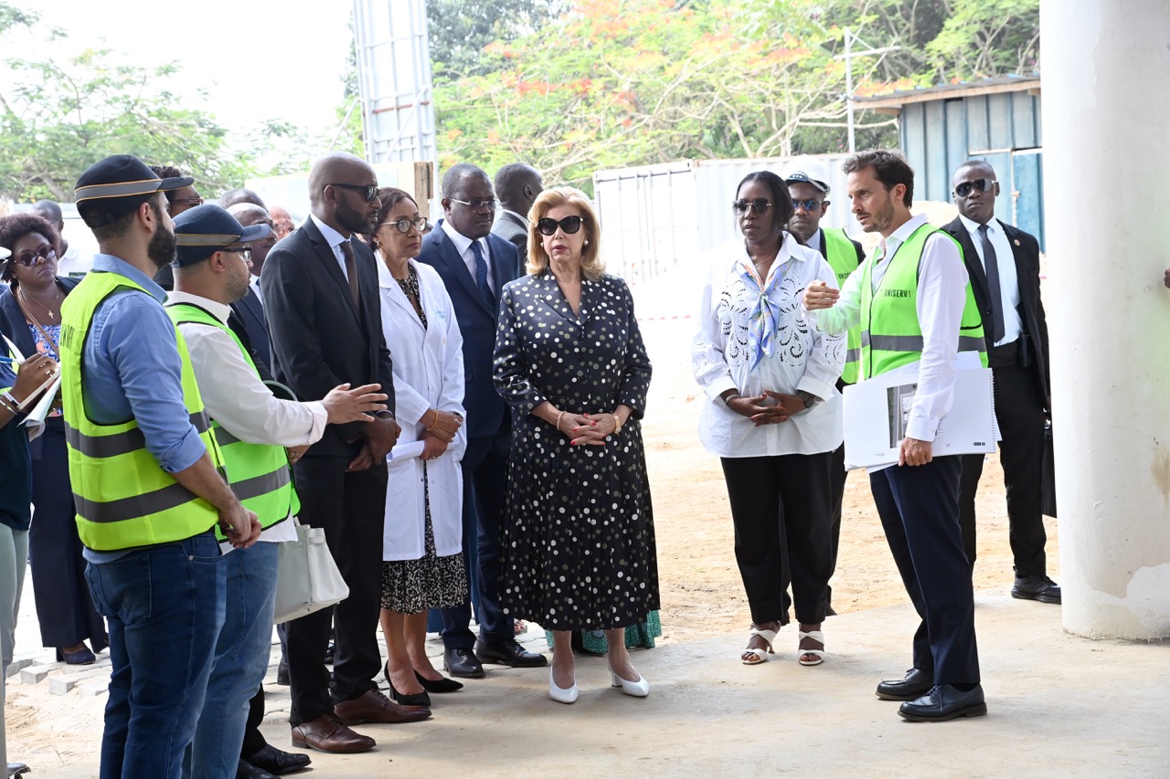 Jeudi 12 février 2026. La Première Dame, Madame Dominique Ouattara visite le chantier de l'aile de chirurgie cardiaque pédiatrique de l'Hôpital Mère-Enfant de Bingerville