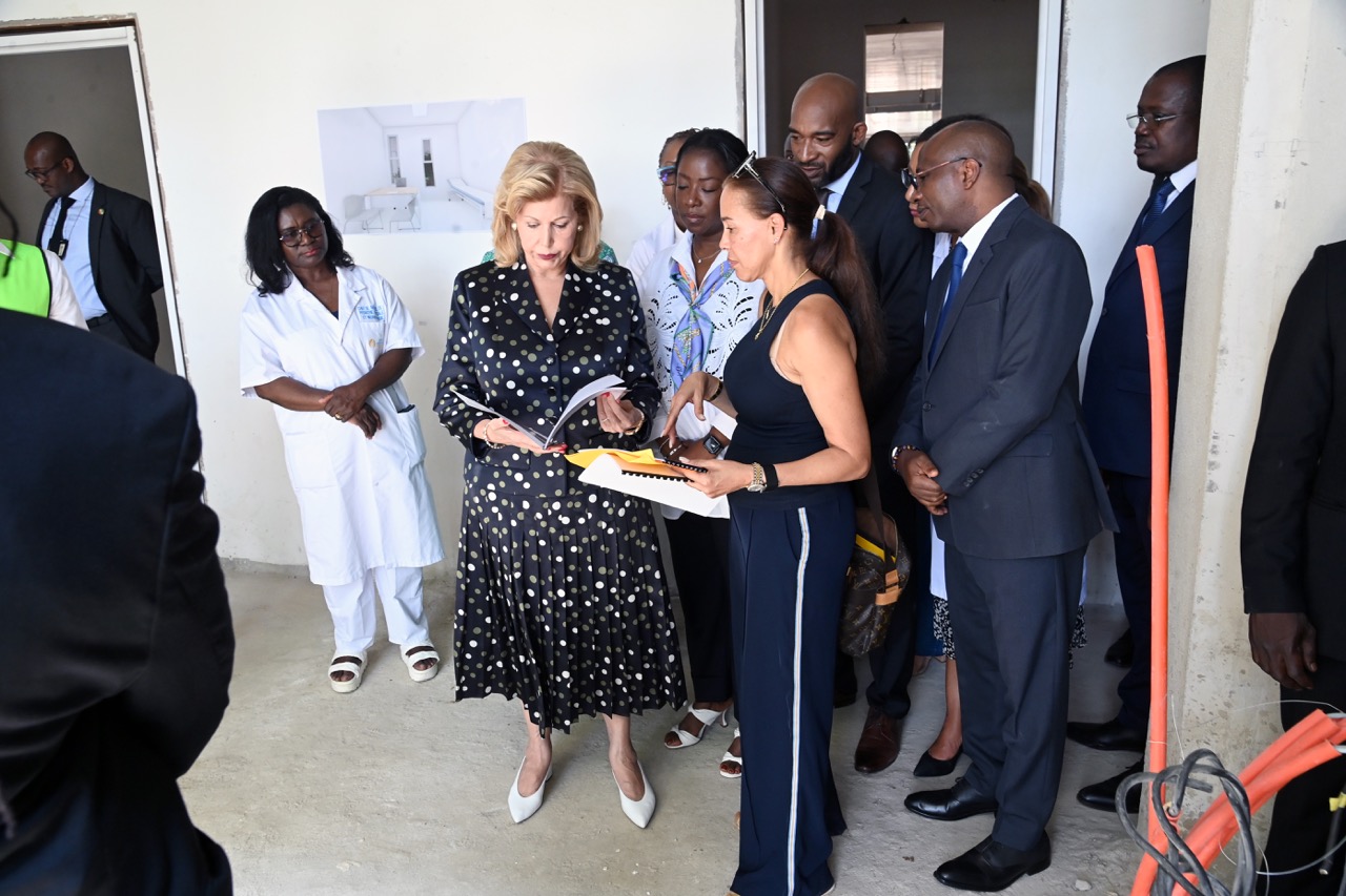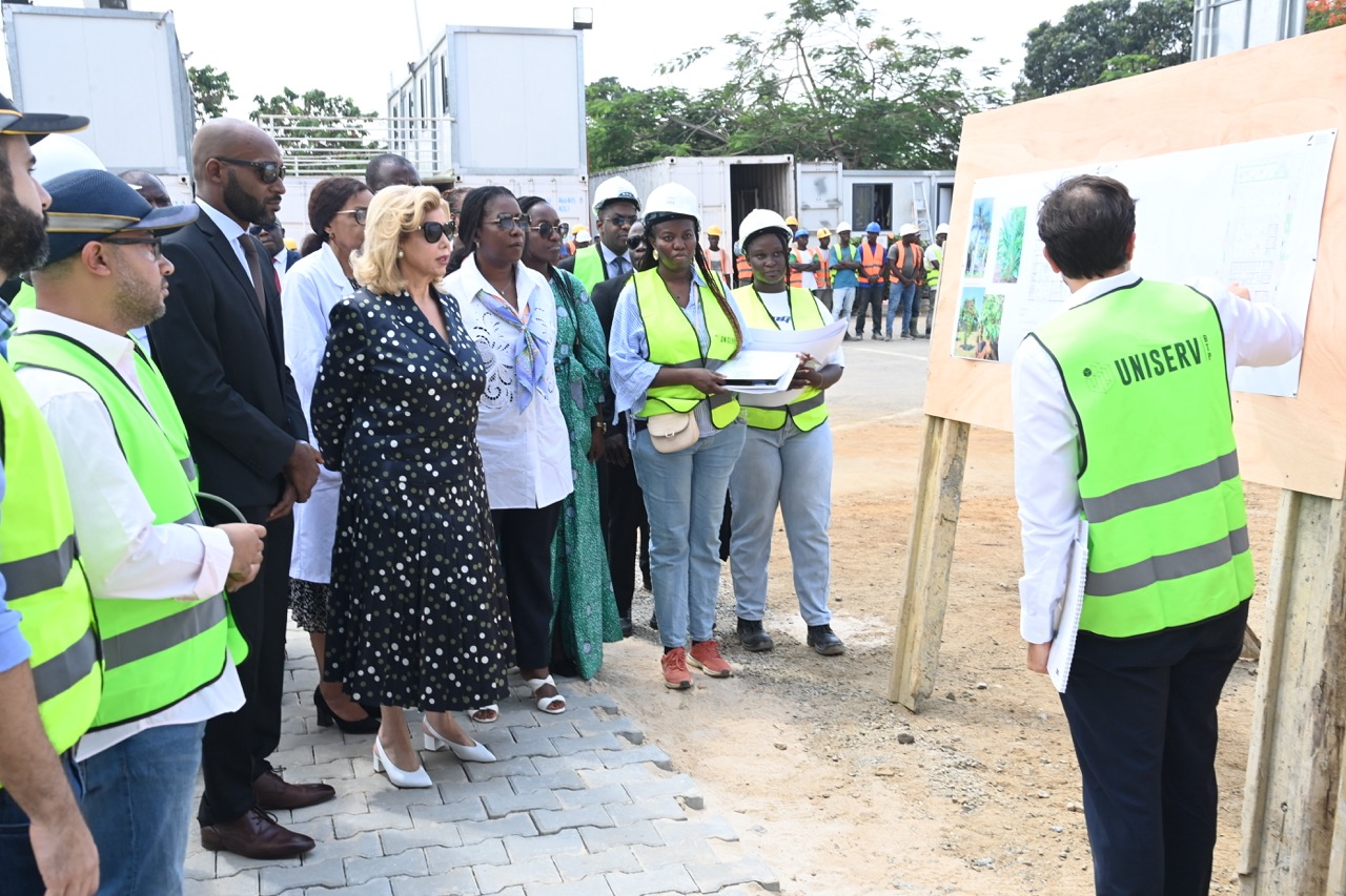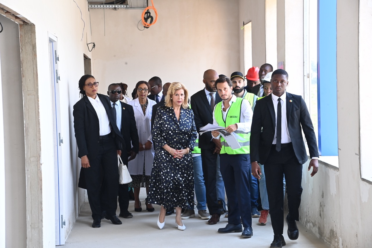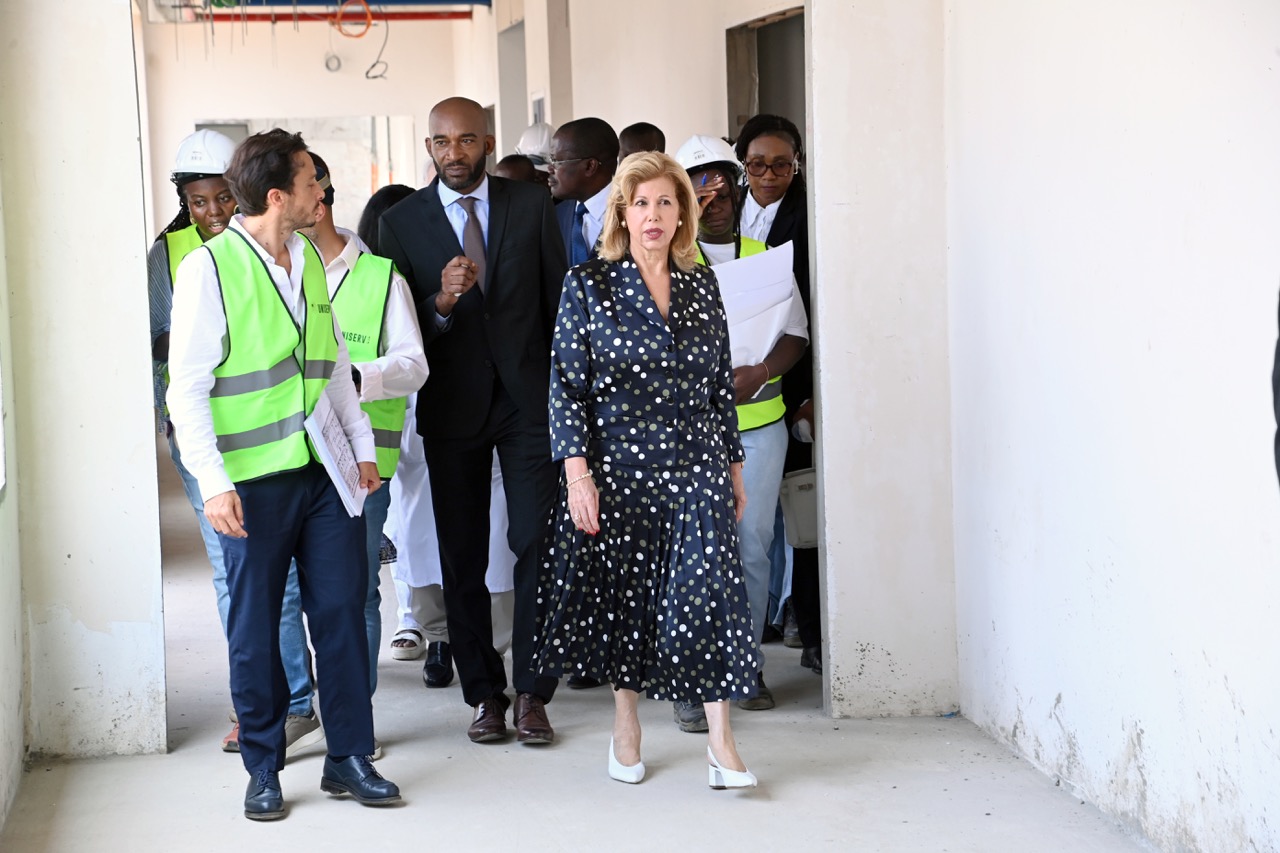Jeudi 12 février 2026. La Première Dame, Madame Dominique Ouattara visite le chantier de l'aile de chirurgie cardiaque pédiatrique de l'Hôpital Mère-Enfant de Bingerville