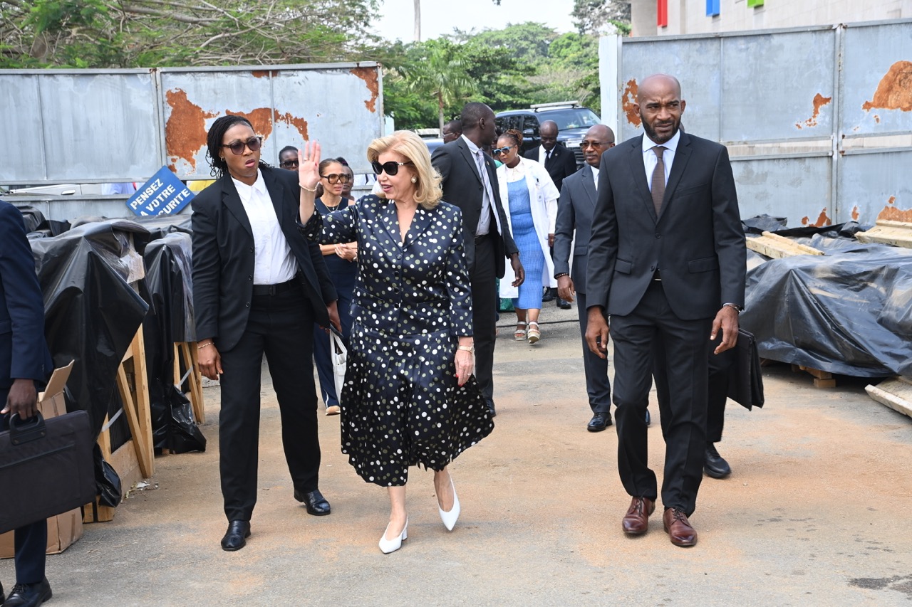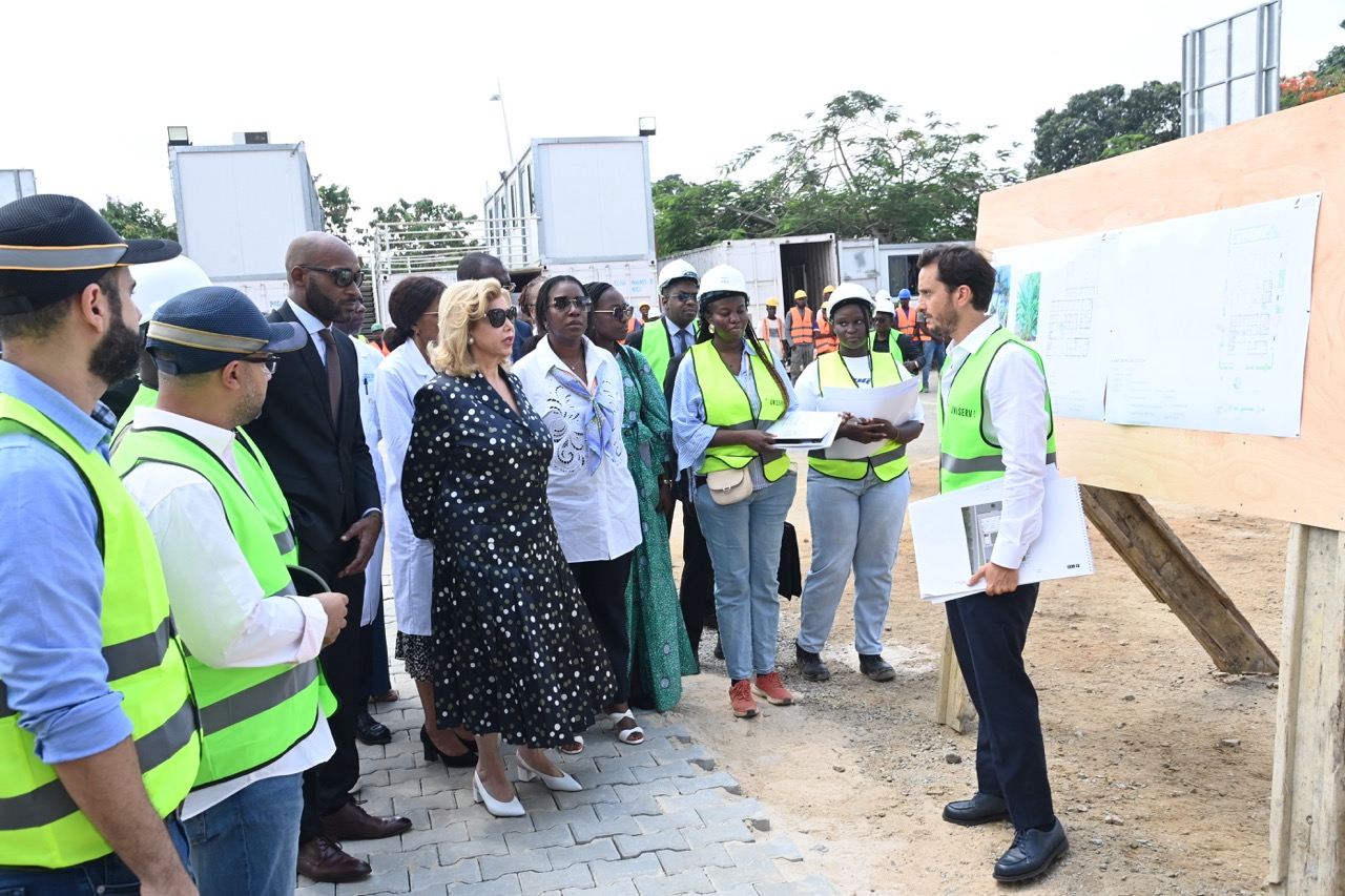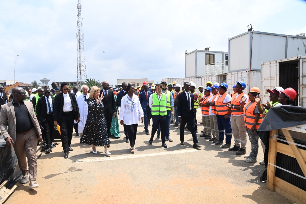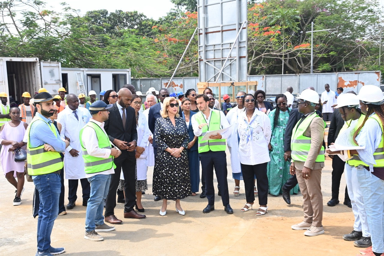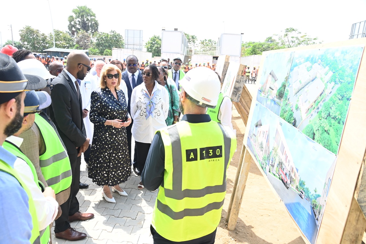 Jeudi 12 février 2026. La Première Dame, Madame Dominique Ouattara visite le chantier de l'aile de chirurgie cardiaque pédiatrique de l'Hôpital Mère-Enfant de Bingerville