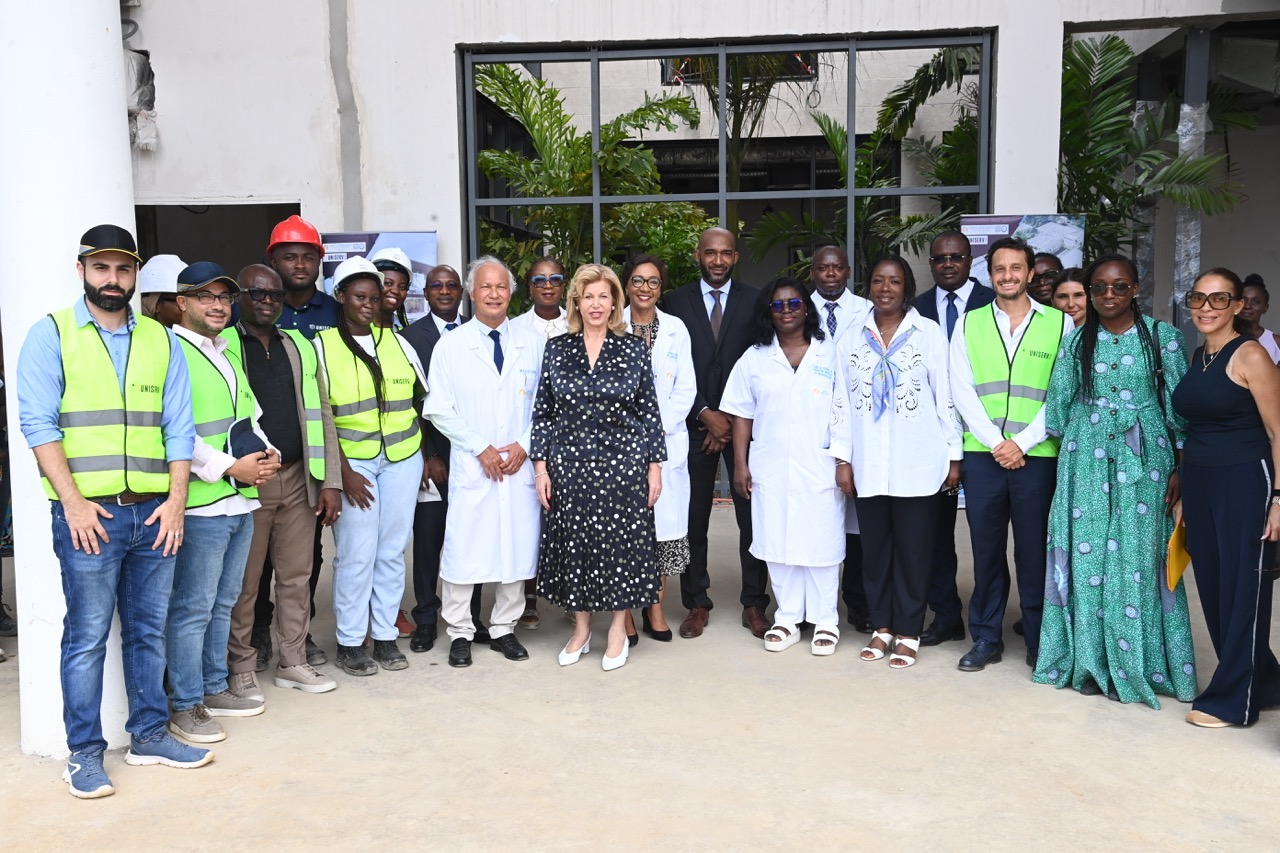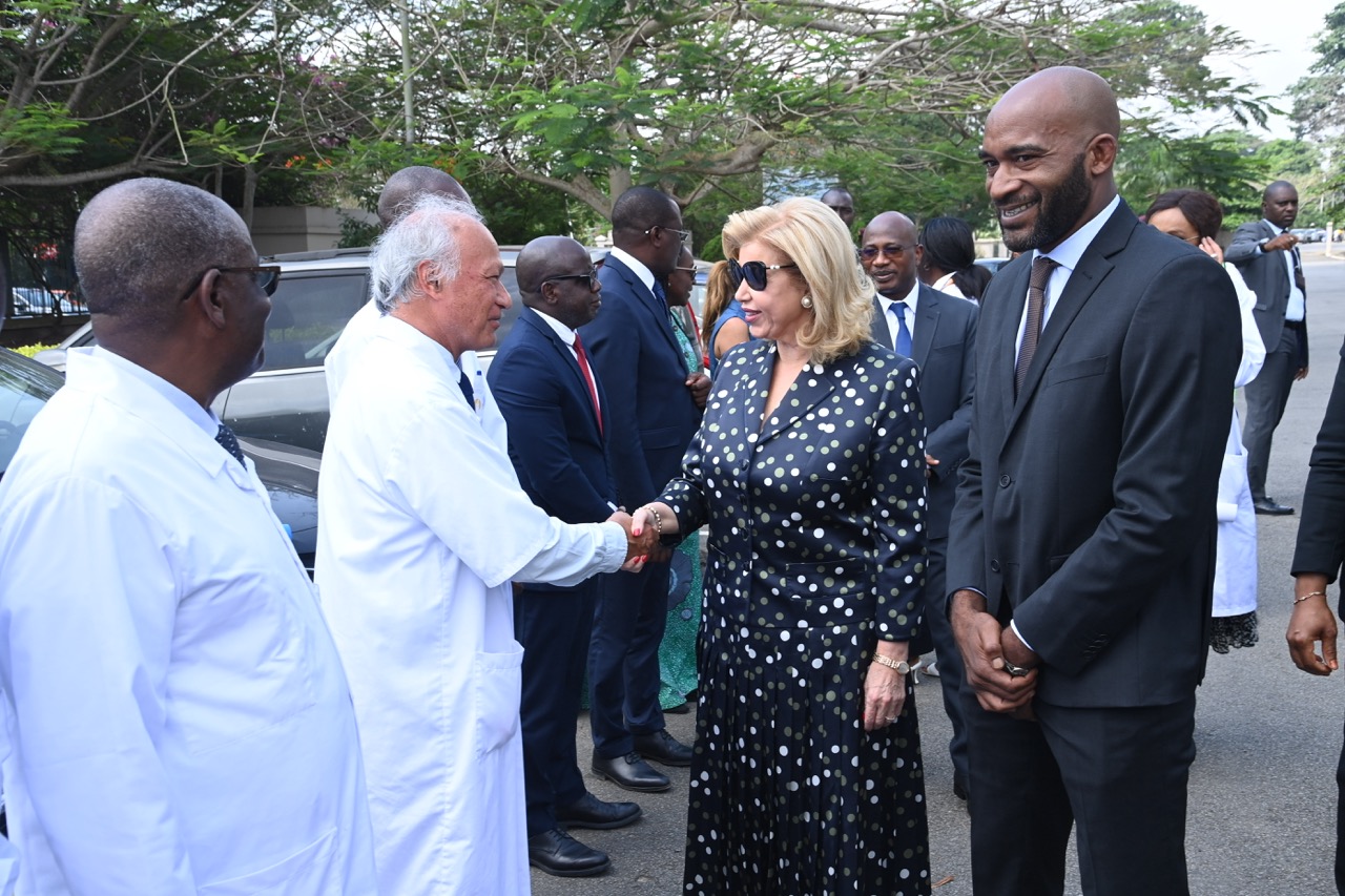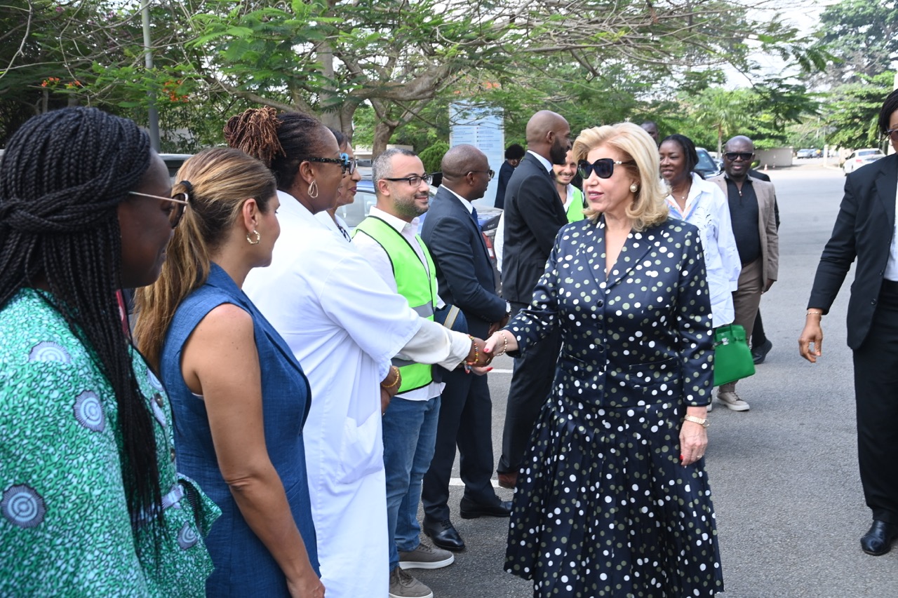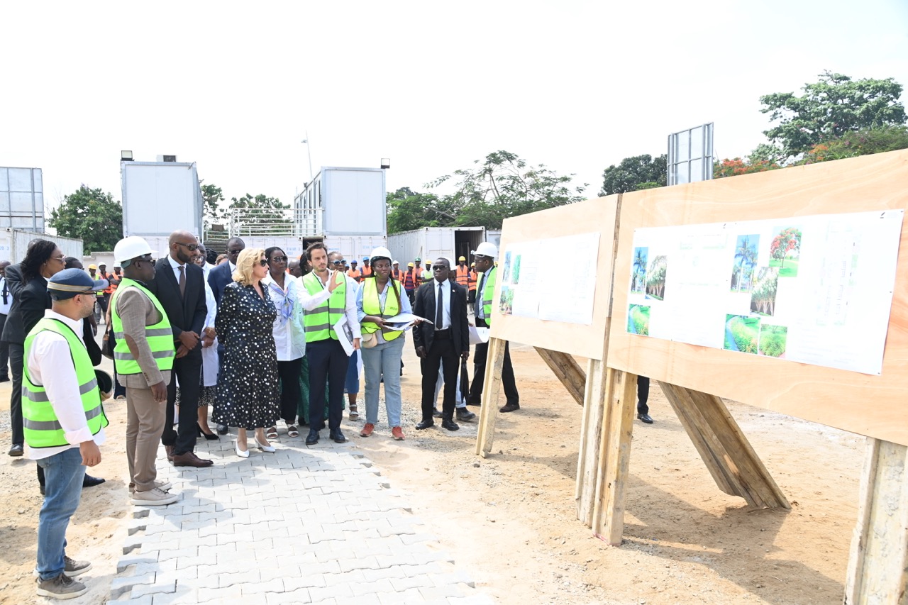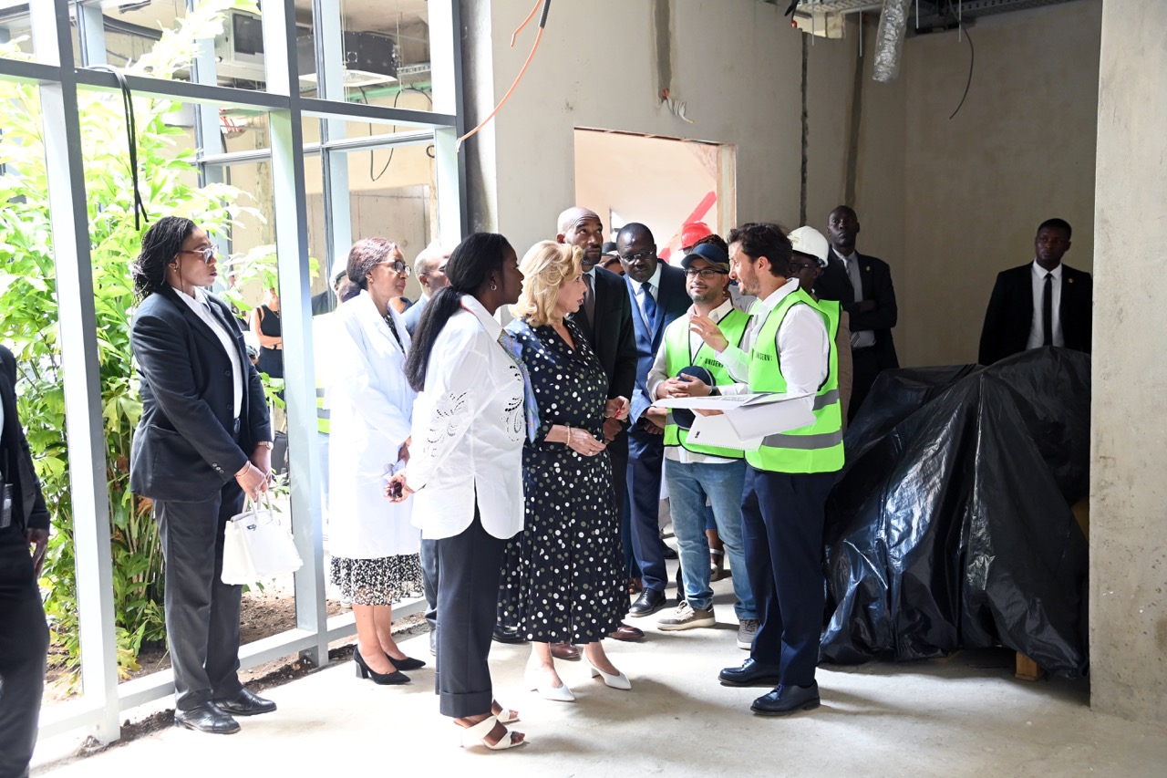 Jeudi 12 février 2026. La Première Dame, Madame Dominique Ouattara visite le chantier de l'aile de chirurgie cardiaque pédiatrique de l'Hôpital Mère-Enfant de Bingerville