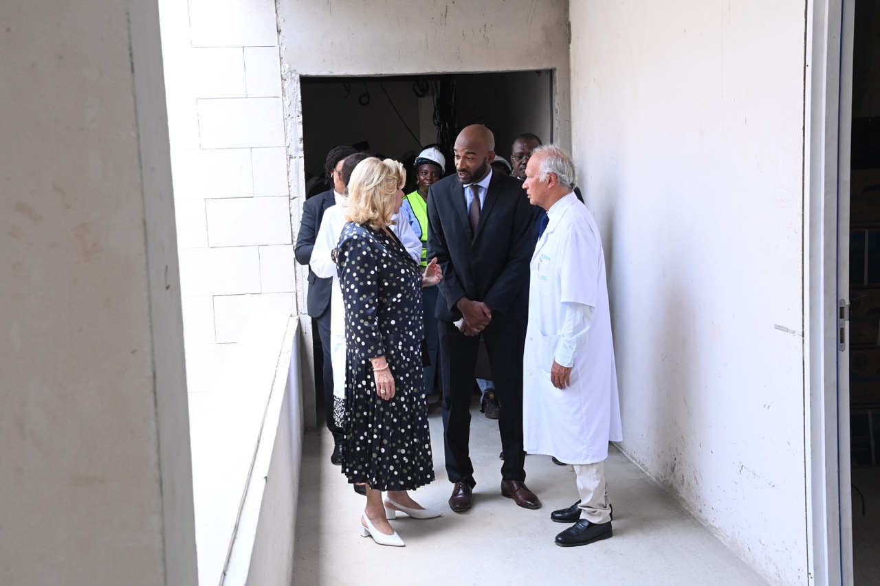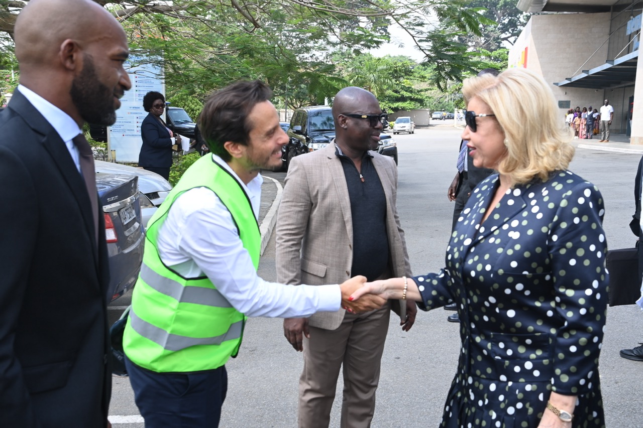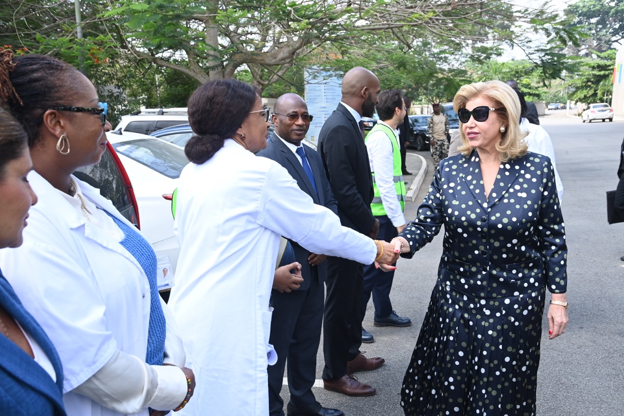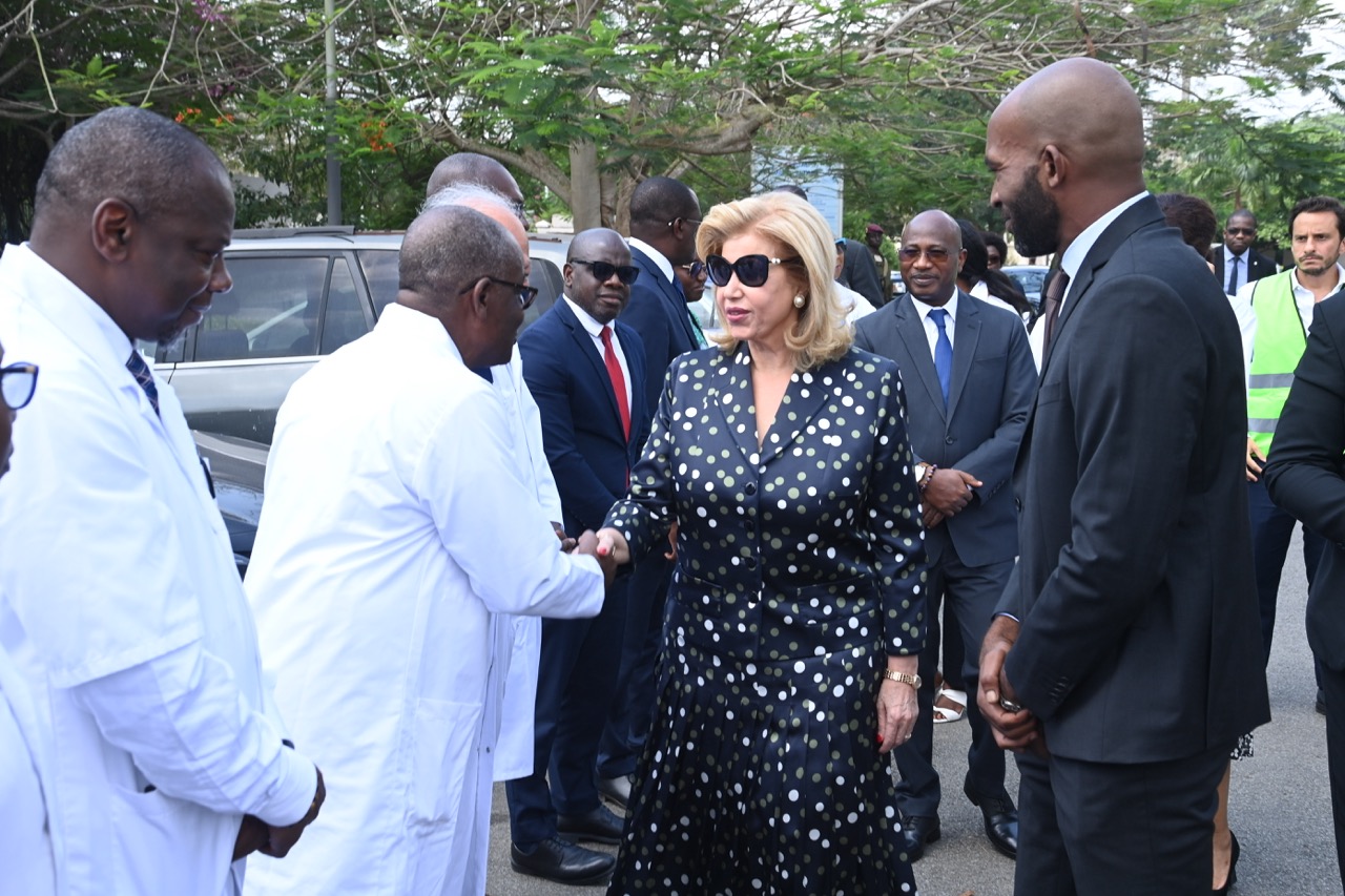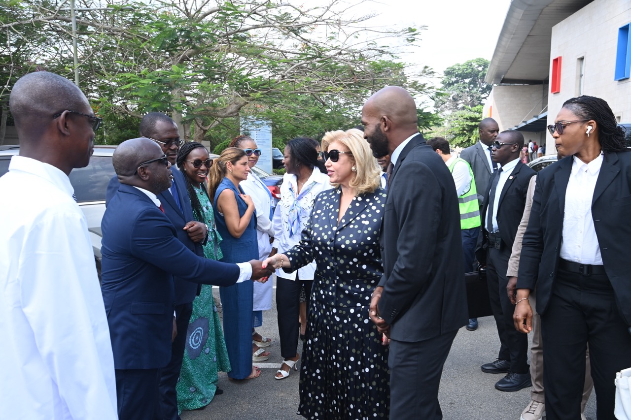 Jeudi 12 février 2026. La Première Dame, Madame Dominique Ouattara visite le chantier de l'aile de chirurgie cardiaque pédiatrique de l'Hôpital Mère-Enfant de Bingerville
