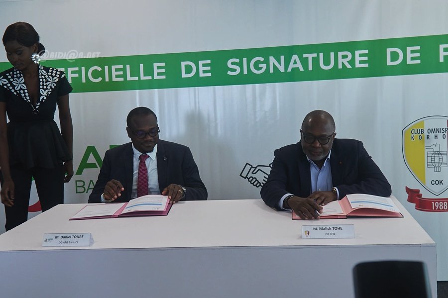 AFG Bank Côte d’Ivoire officialise son partenariat avec le Club Omnisports de Korhogo (COK) lors d’une cérémonie de signature ce 25 mars 2026 à Abidjan.