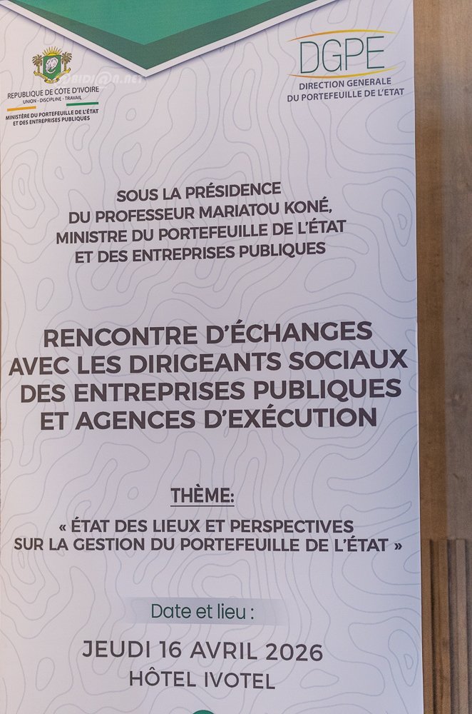 Abidjan 16 avril 2026 . La ministre du Portefeuille de l’État et des Entreprises publiques, Mariatou Koné, a échangé avec les dirigeants sociaux des entreprises publiques et agences d’exécution lors d’une rencontre tenue à l’Ivotel Plateau ce jeudi 16 avril 2026 . Cette session a permis de dresser le bilan des performances du portefeuille de l’État, marquées par une progression significative des indicateurs financiers, tout en mettant en lumière des défis persistants en matière de gouvernance. À cette occasion, la ministre a annoncé l’élaboration d’une stratégie 2026-2030 visant à renforcer la performance, la discipline de gestion et le rôle de l’État actionnaire.