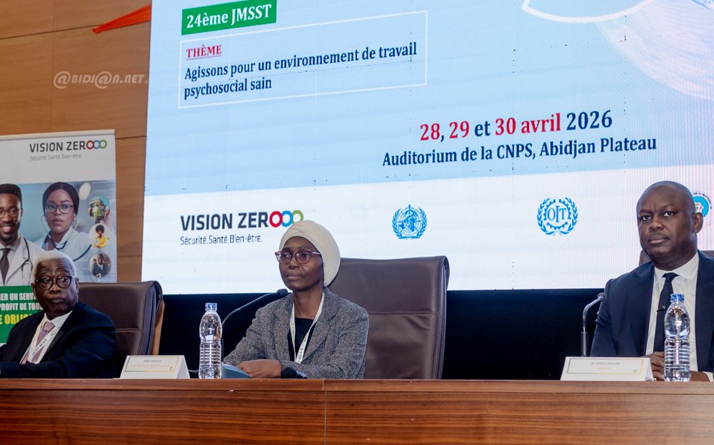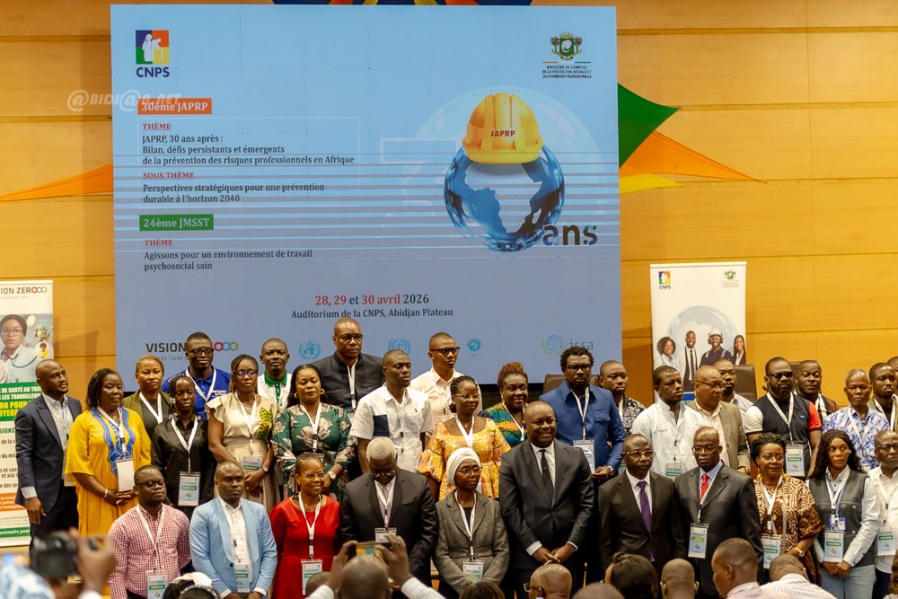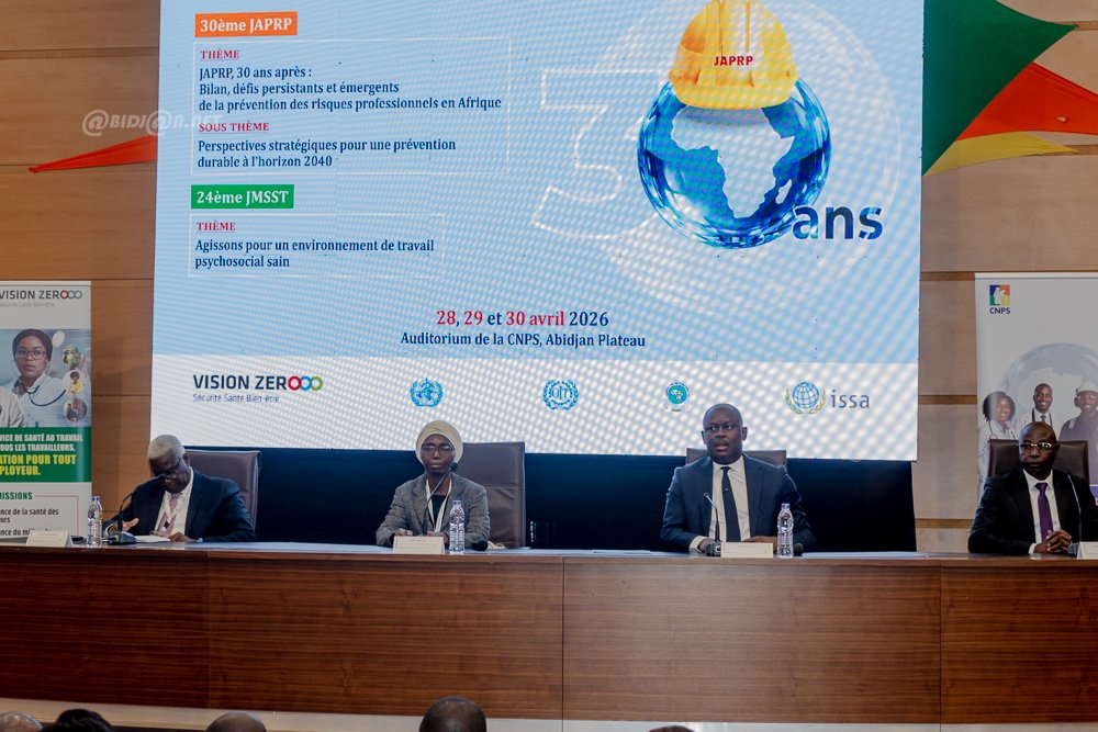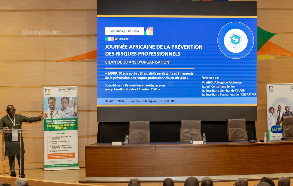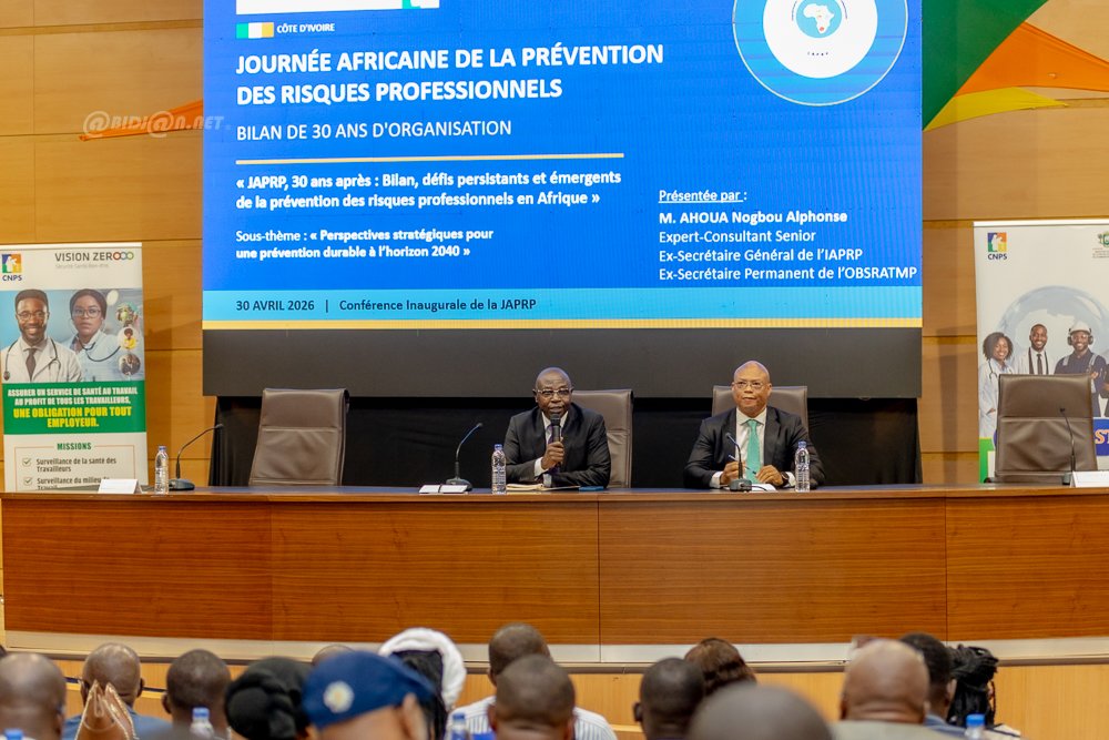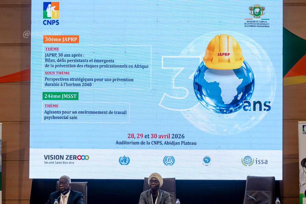 Abidjan 28 Avril 2026 . La Caisse Nationale de Prévoyance Sociale (CNPS), sous la présidence du ministre , organise du 28 au 30 avril 2026 à son auditorium au Plateau, la 30e Journée Africaine de la Prévention des Risques Professionnels et la 24e Journée Mondiale de la Sécurité et de la Santé au Travail. Ces rencontres porteront sur les défis actuels de la prévention en Afrique et la promotion de milieux de travail psychosociaux favorables. Elles réuniront experts et acteurs du monde professionnel autour des enjeux de sécurité et de santé au travail.