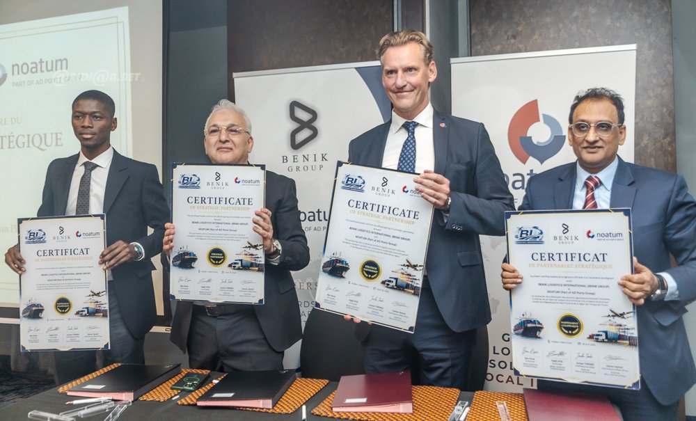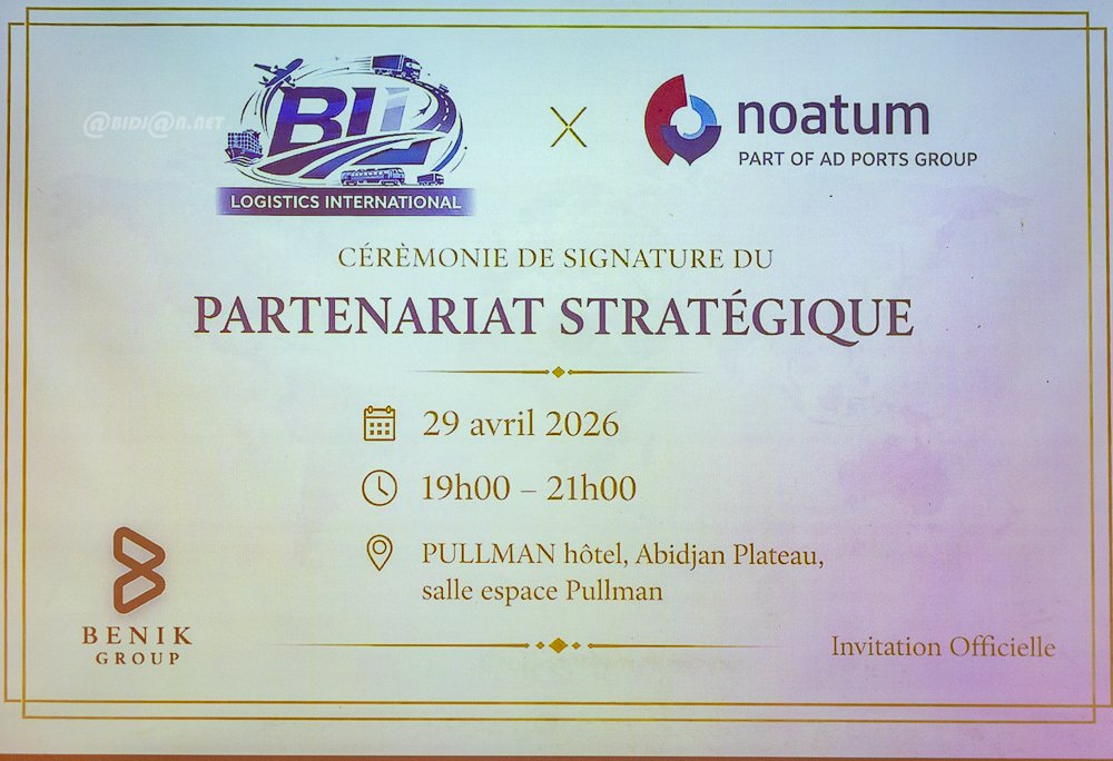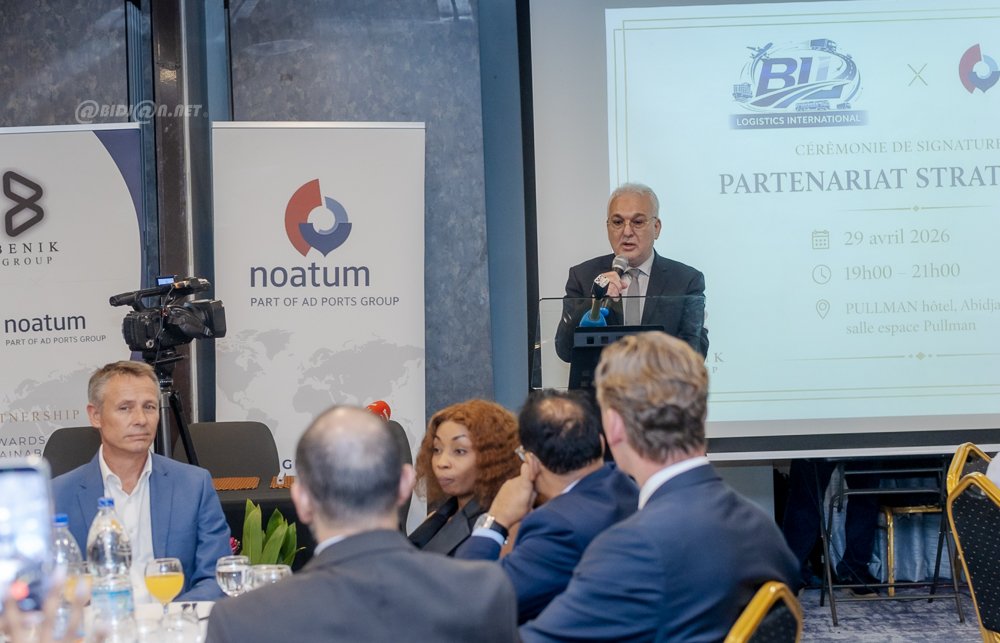 Abidjan 29 avril 2026 .Une cérémonie de signature de partenariat stratégique s’est tenue ce mercredi 29 avril à l’hôtel Pullman Abidjan Plateau, réunissant BIL Logistics International et Noatum (Part of AD Ports Group), avec la participation de Benik Group. Placé sous le slogan « Deux acteurs engagés pour une logistique intégrée, durable et tournée vers l’avenir ». Cette alliance vise à renforcer les capacités logistiques et à promouvoir des solutions innovantes et durables en Côte d’Ivoire et dans la sous-région.