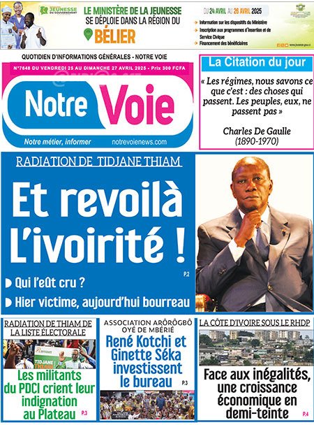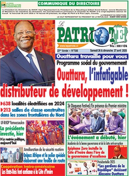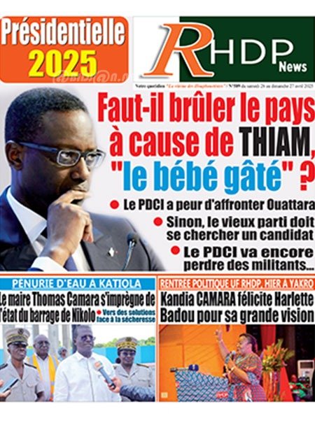 Politique Publié le samedi 26 avril 2025 | RHDPNews Titrologie de RHDPNews N°589 du samedi 26 avril 2025 Acheter cette parution Acheter cette parution du même jour Réagir à la une
