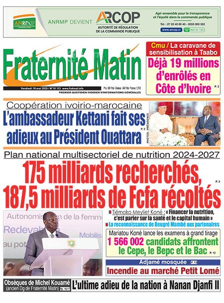 Publié le vendredi 16 mai 2025 | L’Essor Ivoirien Titrologie de L’Essor Ivoirien N°1736 du vendredi 16 mai 2025 Acheter cette parution Acheter cette parution du même jour Réagir à la une