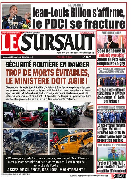 Publié le mercredi 28 mai 2025 | Nord Sud Infos Titrologie de Nord Sud Infos N°177 du mercredi 28 mai 2025 Acheter cette parution Acheter cette parution du même jour Réagir à la une