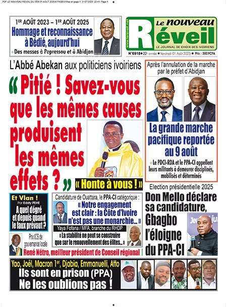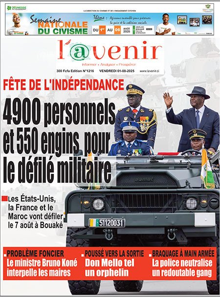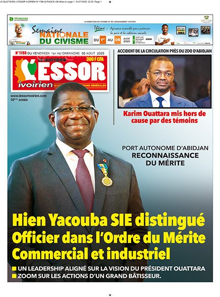 Publié le samedi 2 août 2025 | L’Essor Ivoirien Titrologie de L’Essor Ivoirien N°1788 du samedi 2 août 2025 Acheter cette parution Acheter cette parution du même jour Réagir à la une
