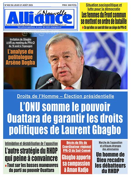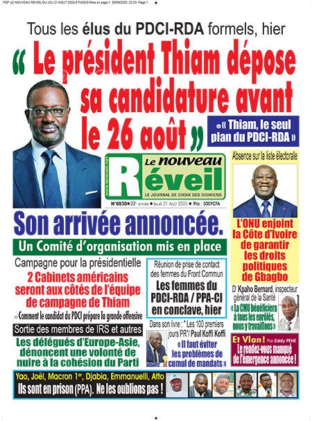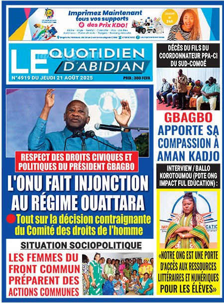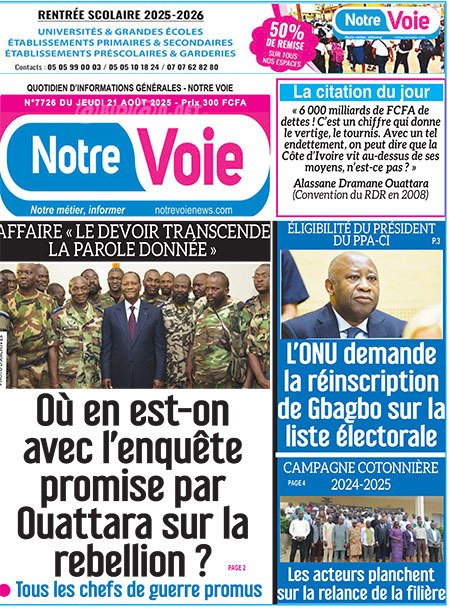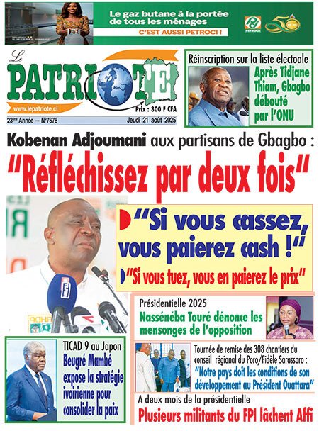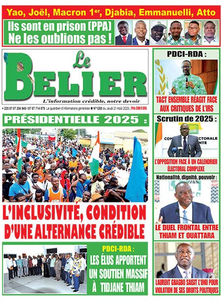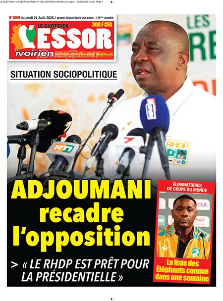Publié le jeudi 21 août 2025 | L’Essor Ivoirien Titrologie de L’Essor Ivoirien N°1800 du jeudi 21 août 2025 Acheter cette parution Acheter cette parution du même jour Réagir à la une
