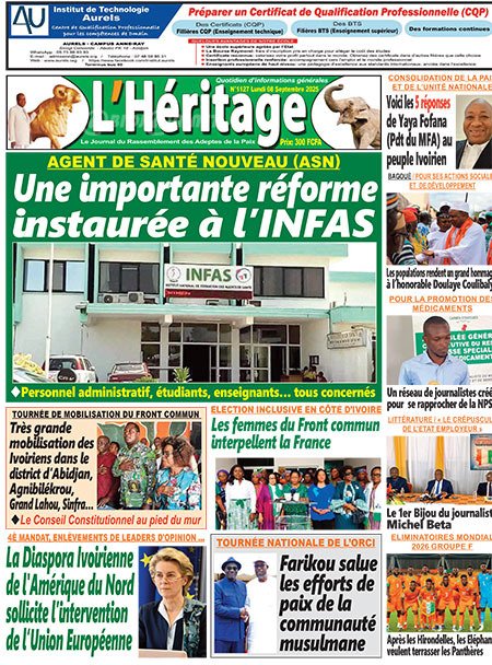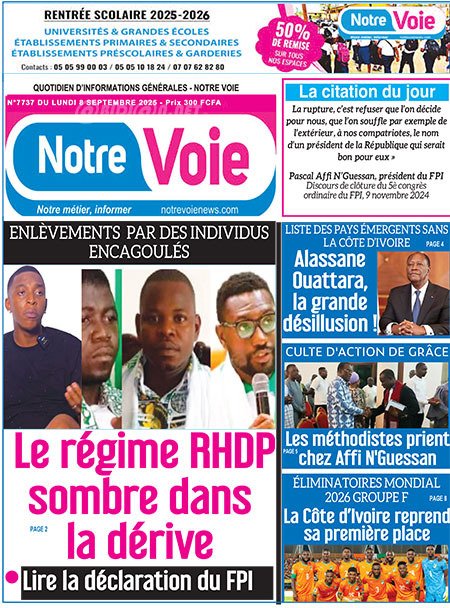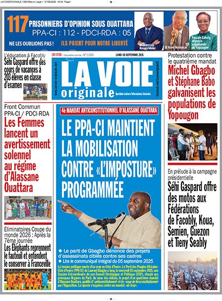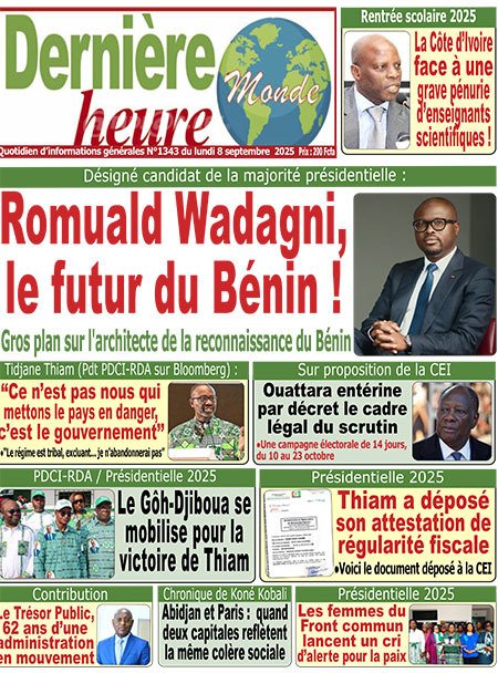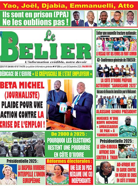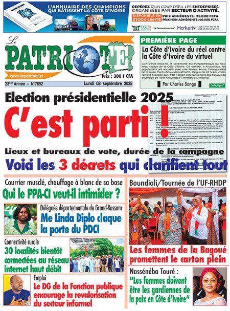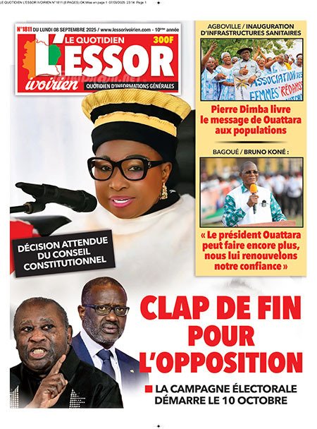 Publié le lundi 8 septembre 2025 | L’Essor Ivoirien Titrologie de L’Essor Ivoirien N°1811 du lundi 8 septembre 2025 Voir la Titrologie du jour du même jour Réagir à la une