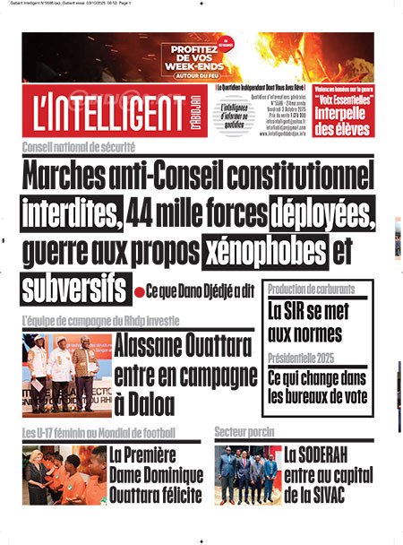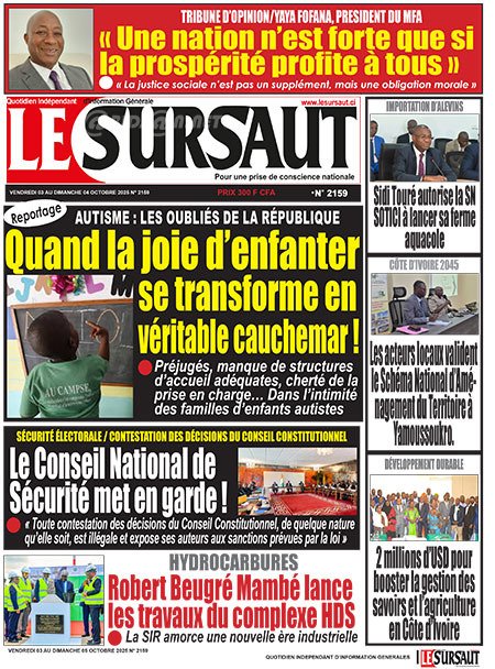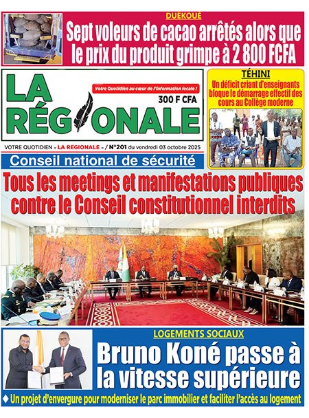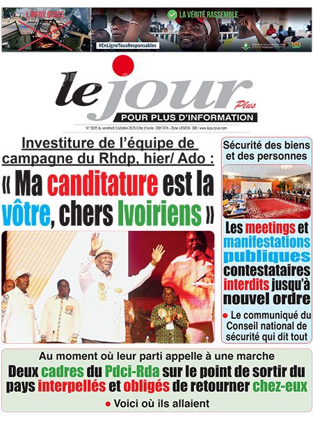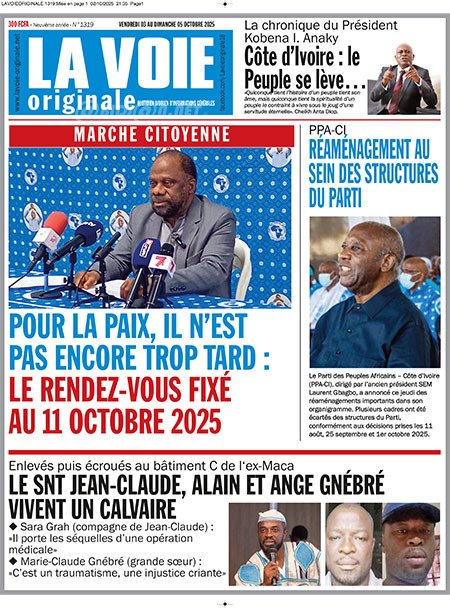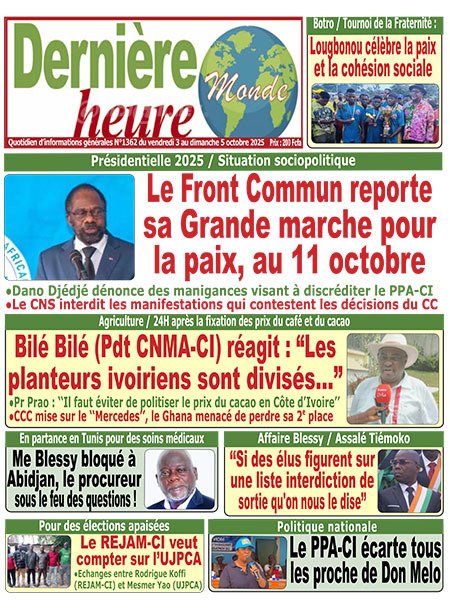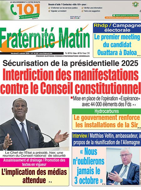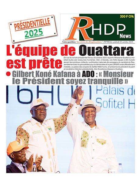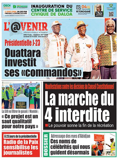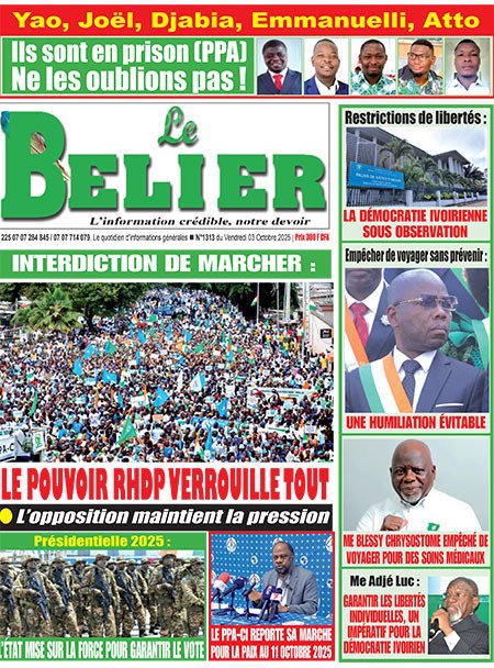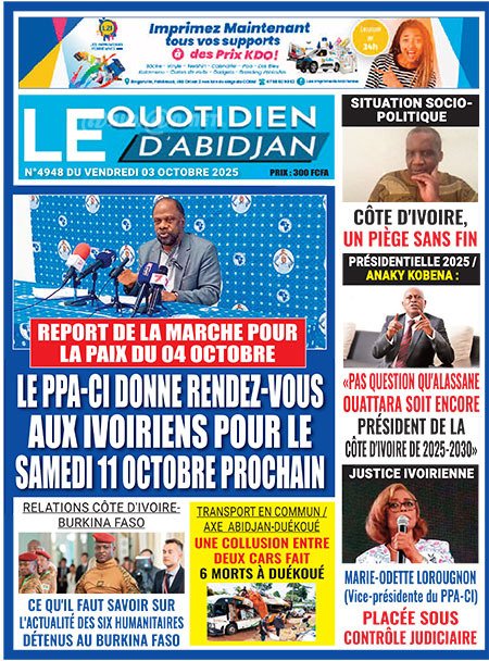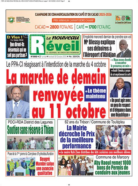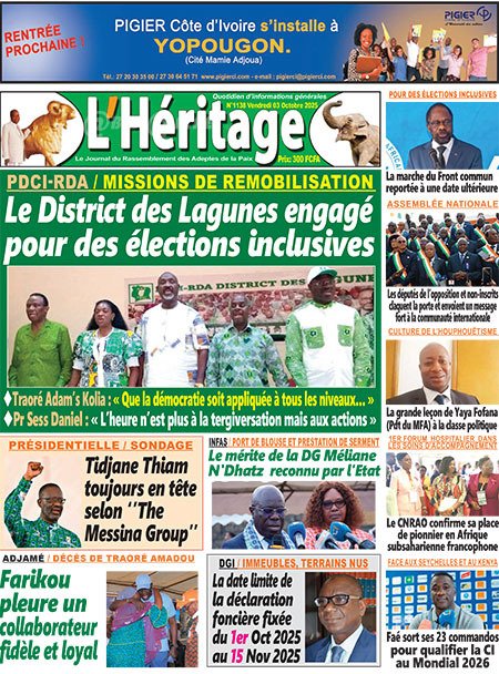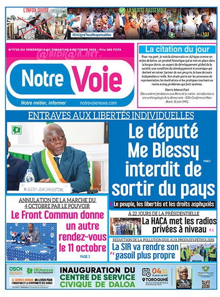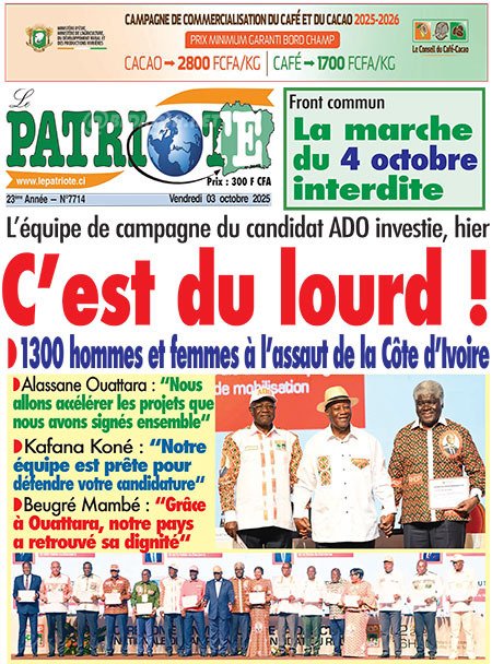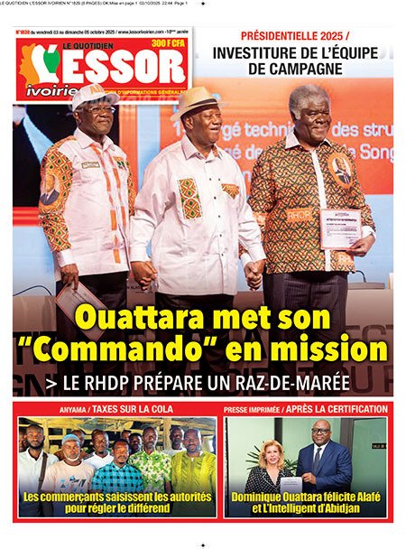 Publié le vendredi 3 octobre 2025 | L’Essor Ivoirien Titrologie de L’Essor Ivoirien N°1830 du vendredi 3 octobre 2025 Acheter cette parution Acheter cette parution du même jour Réagir à la une