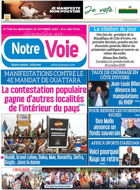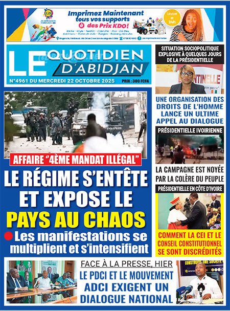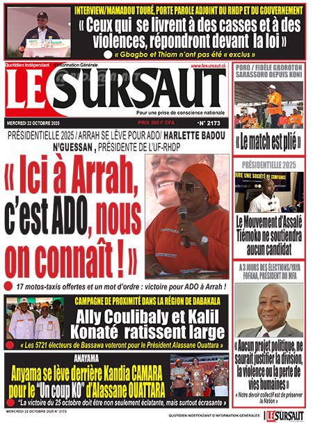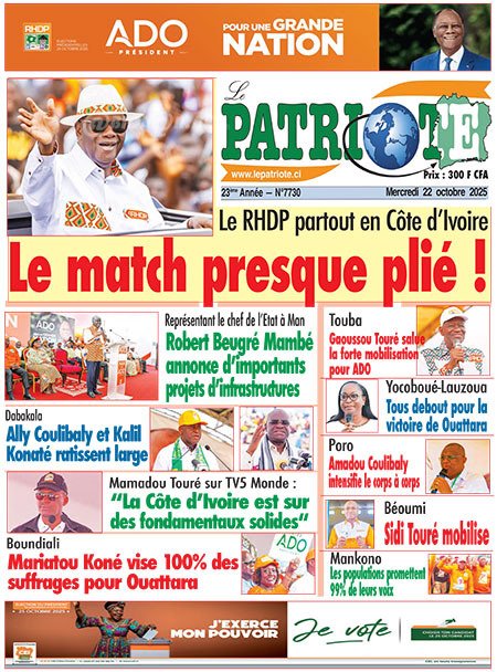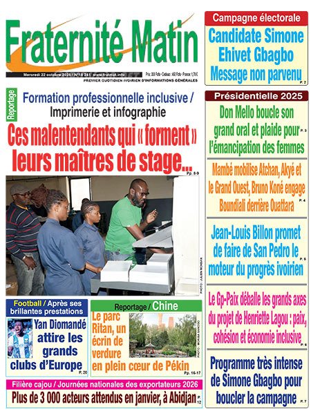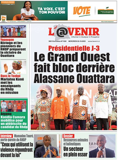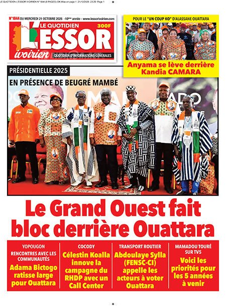 Publié le mercredi 22 octobre 2025 | L’Essor Ivoirien Titrologie de L’Essor Ivoirien N°1844 du mercredi 22 octobre 2025 Acheter cette parution Acheter cette parution du même jour Réagir à la une
