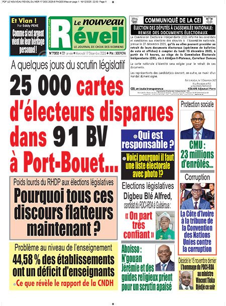 Publié le mercredi 17 décembre 2025 | Le Nouveau Réveil Titrologie de Le Nouveau Réveil N°7002 du mercredi 17 décembre 2025 Voir la Titrologie du jour du même jour Réagir à la une