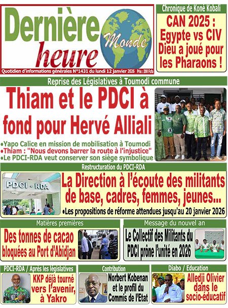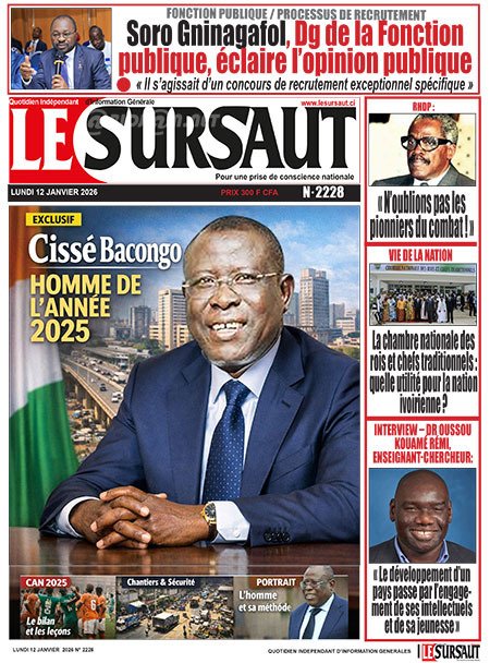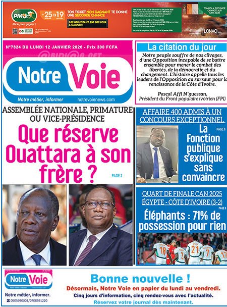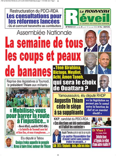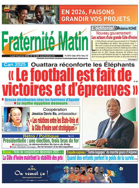 Publié le lundi 12 janvier 2026 | L’Essor Ivoirien Titrologie de L’Essor Ivoirien N°1899 du lundi 12 janvier 2026 Voir la Titrologie du jour du même jour Réagir à la une