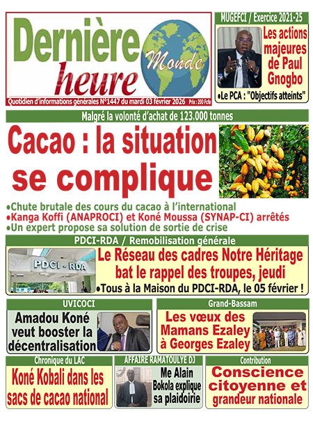 Publié le mardi 3 février 2026 | Dernière Heure Monde Titrologie de Dernière Heure Monde N°1447 du mardi 3 février 2026 Voir la Titrologie du jour du même jour Réagir à la une