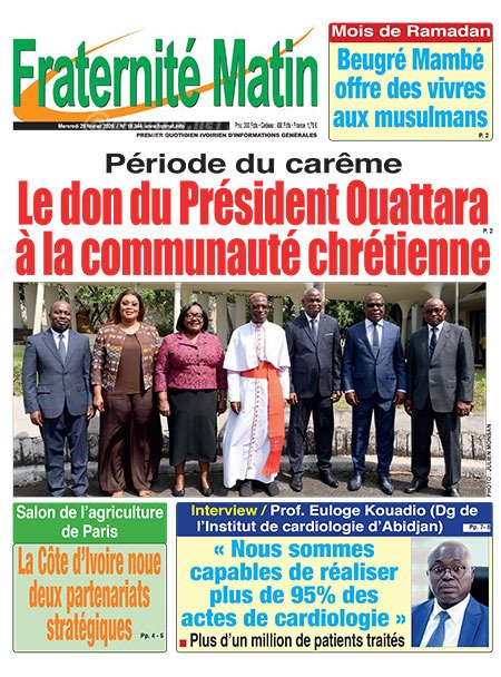 Publié le mercredi 25 février 2026 | Fraternité Matin Titrologie de Fraternité Matin N°18334 du mercredi 25 février 2026 Acheter cette parution Acheter cette parution du même jour Réagir à la une