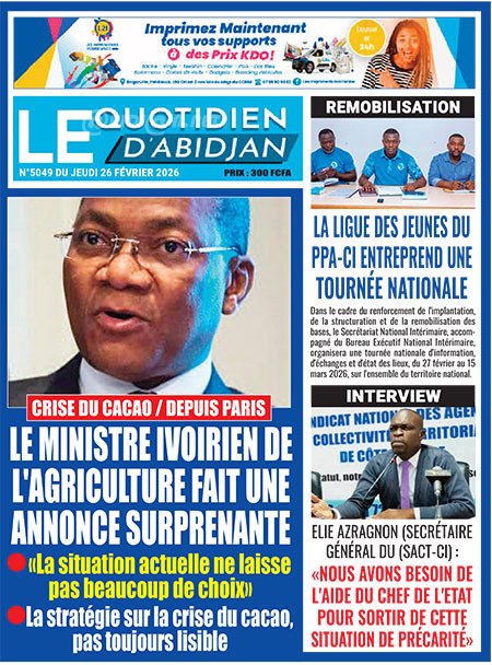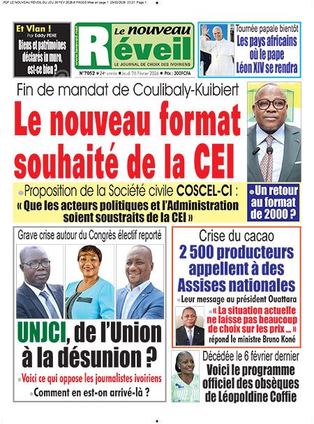 Publié le jeudi 26 février 2026 | Le Nouveau Réveil Titrologie de Le Nouveau Réveil N°7052 du jeudi 26 février 2026 Voir la Titrologie du jour du même jour Réagir à la une