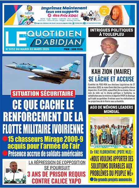 Publié le mardi 3 mars 2026 | L’intelligent d’Abidjan Titrologie de L’intelligent d’Abidjan N°5659 du mardi 3 mars 2026 Acheter cette parution Acheter cette parution du même jour Réagir à la une