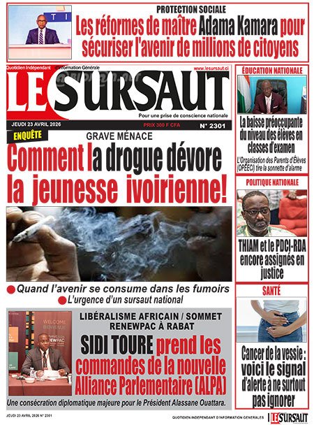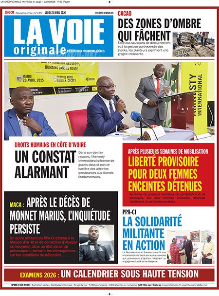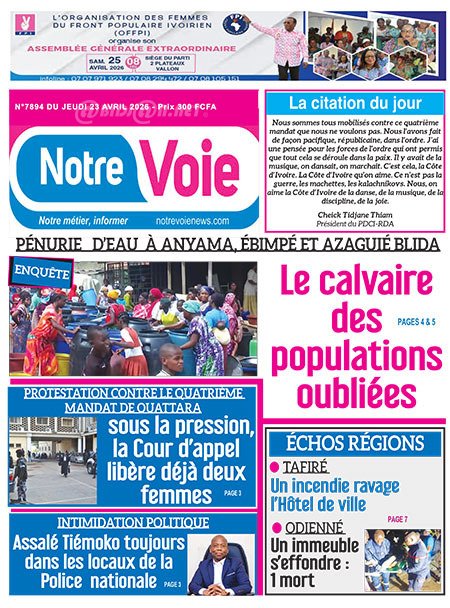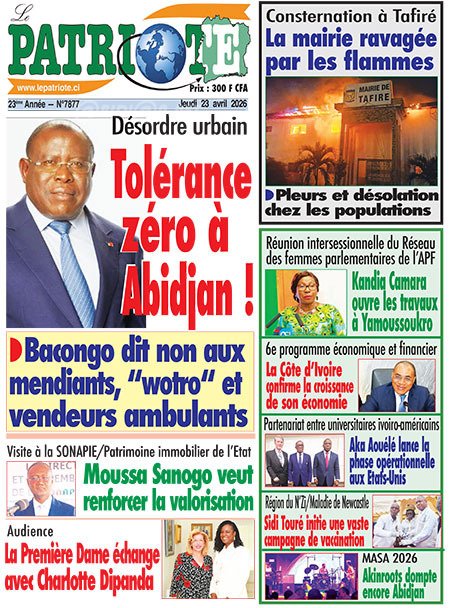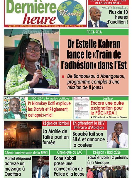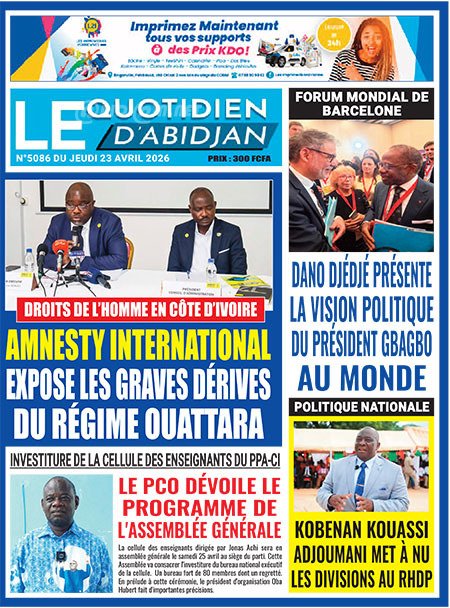 Publié le jeudi 23 avril 2026 | Le Quotidien d’Abidjan Titrologie de Le Quotidien d’Abidjan N°5086 du jeudi 23 avril 2026 Voir la Titrologie du jour du même jour Réagir à la une