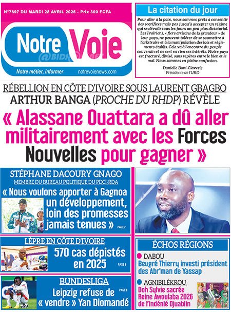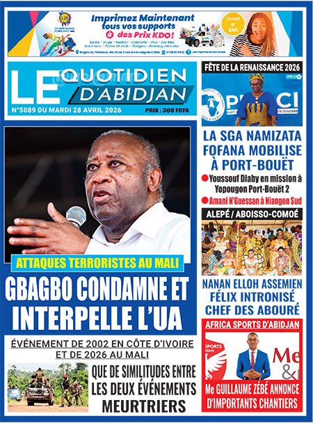 Publié le mardi 28 avril 2026 | Le Quotidien d’Abidjan Titrologie de Le Quotidien d’Abidjan N°5089 du mardi 28 avril 2026 Voir la Titrologie du jour du même jour Réagir à la une